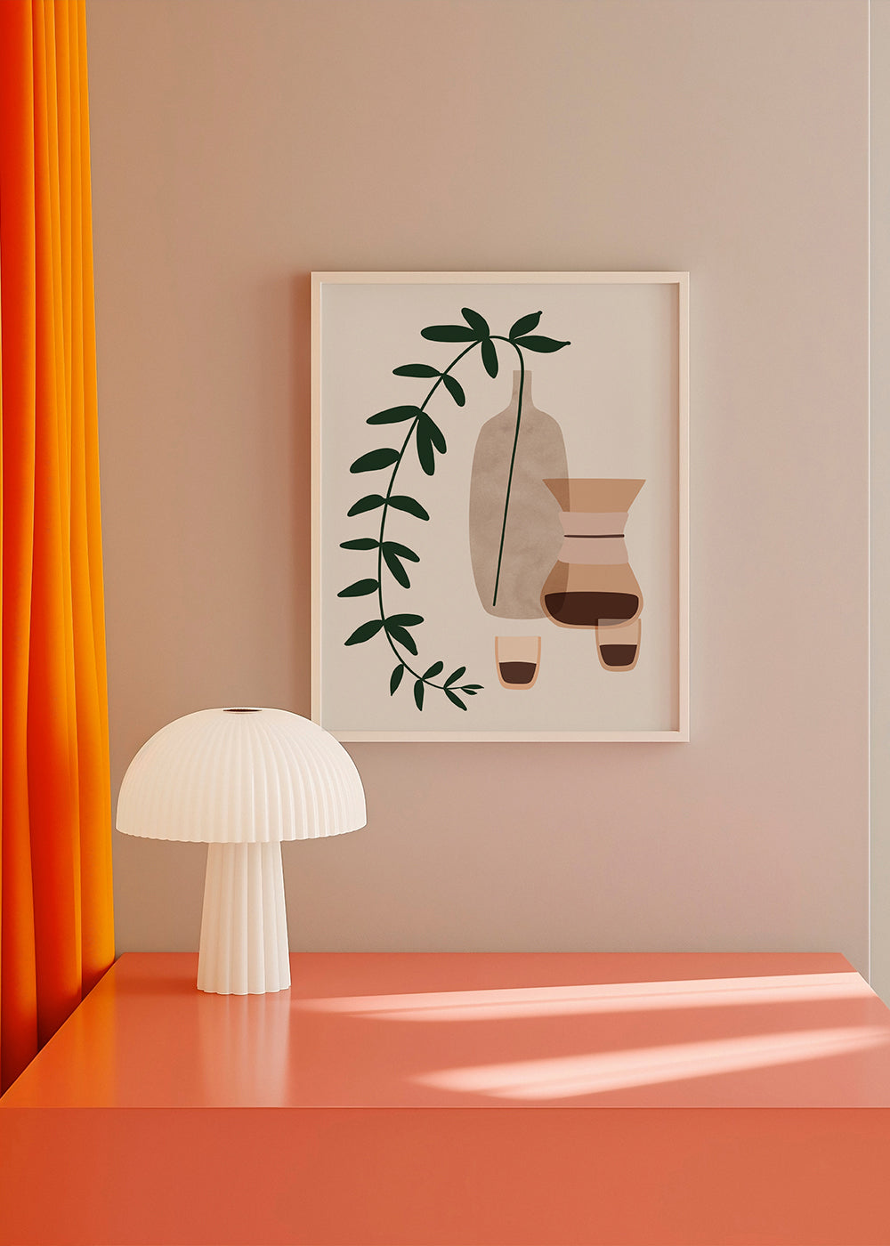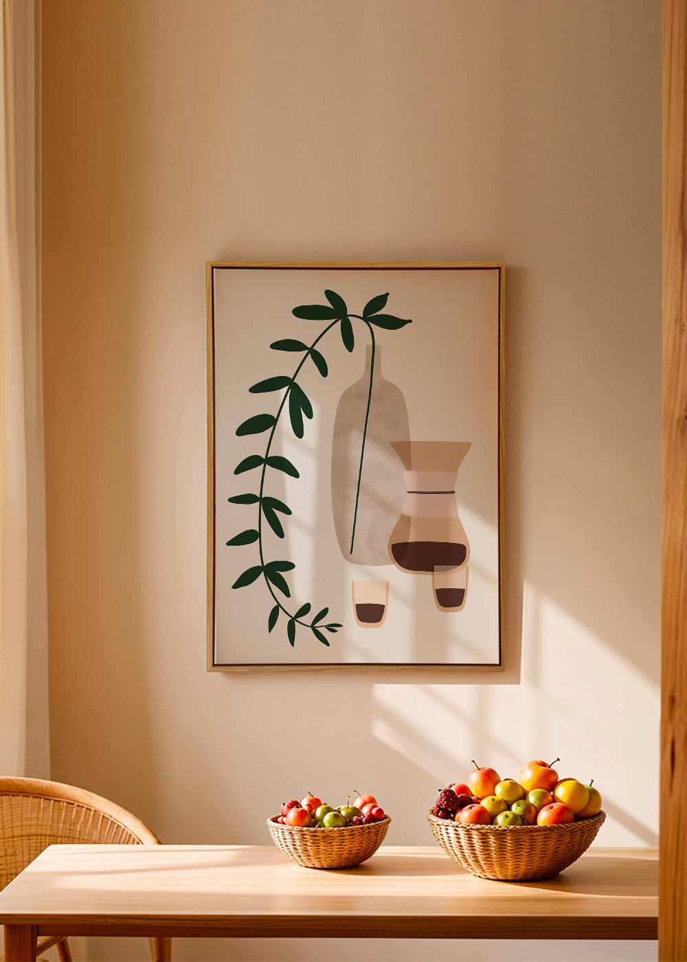 Esta lámina de nuestro repertorio de cuadros de café, perteneciente a la colección de Blursbyai, de matices verdes, y para colocar en posición vertical. Las láminas con ilustraciones son perfectas para llenar las paredes de creatividad. Una pared vacía es un lienzo que debe ser pintado.