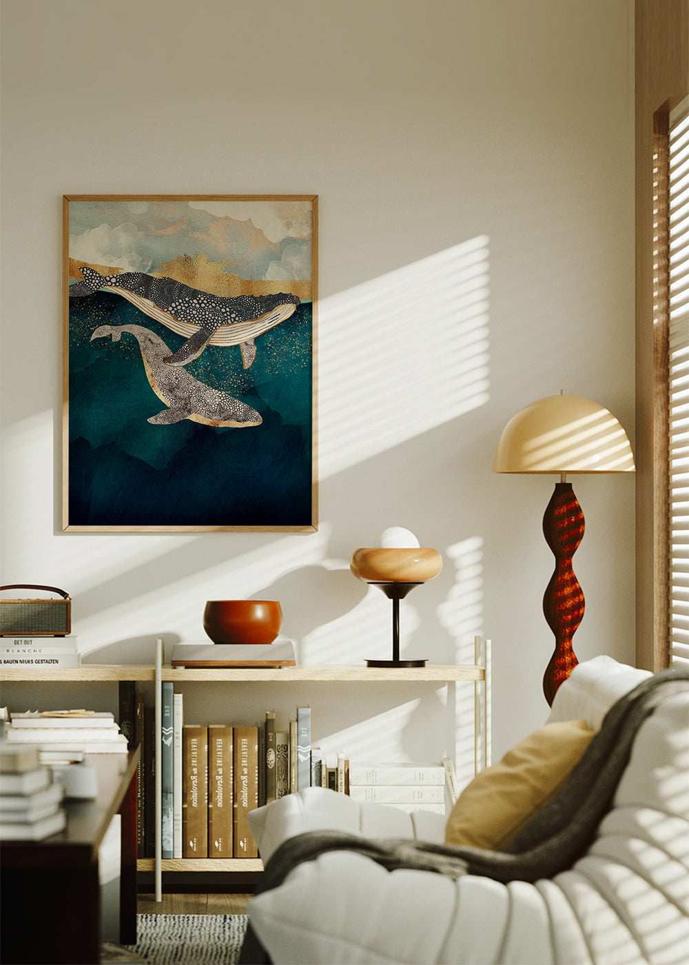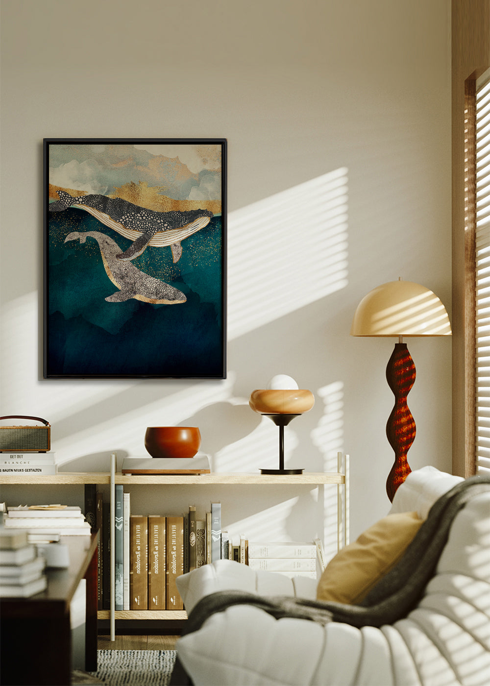 Un cuadro con inspiración en nuestra colección de cuadros de animales, hecha por SpaceFrog Designs, en tonalidades de colores azules, y ideal para poner en posición vertical. Los cuadros de paisajes son espectaculares, combínalos con textos y frases para crear composiciones de pared chulísimas. Una pieza que seguro dará un plus a la estancia.