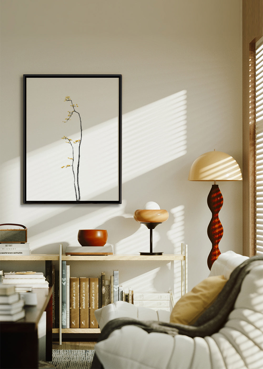 Un póster de la colección cuadros de cactus, de la mano de amini54, en tonos amarillos, y con orientación vertical. La decoración con cuadros de botánica es ideal para los amantes de la natura. Añade un poco de arte a la decoración de tu hogar.