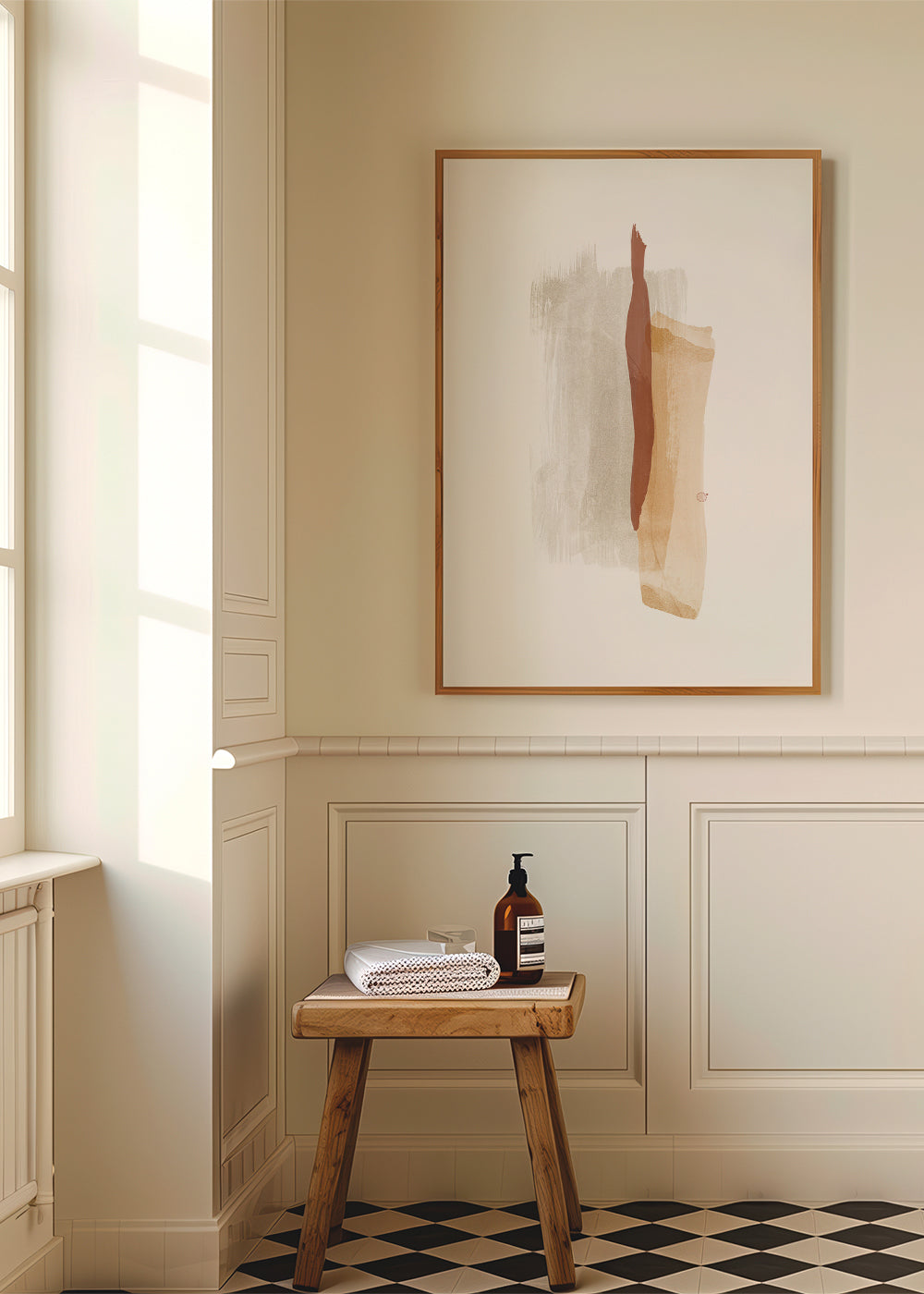 Bonito cuadro de nuestro conjunto de cuadros abstractos, concebida por Nouveau Prints, en tonalidades de colores marrones, y de formato vertical. Los cuadros abstractos son ideales para crear espacios singulares y creativos. Libera tu espíritu creativo y decora tus paredes con arte.