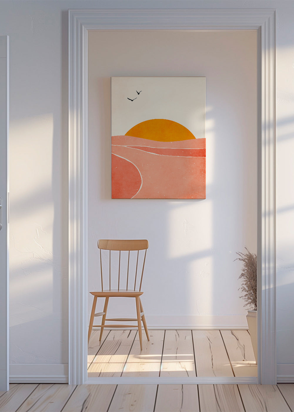 Un cuadro de la serie de cuadros de amaneceres y atardeceres, de la mano de Kubistika, de matices rojos, y para colocar en posición vertical. Un bonito paisaje ideal para combinar con otros cuadros de naturaleza. La combinación perfecta de originalidad y diseño.