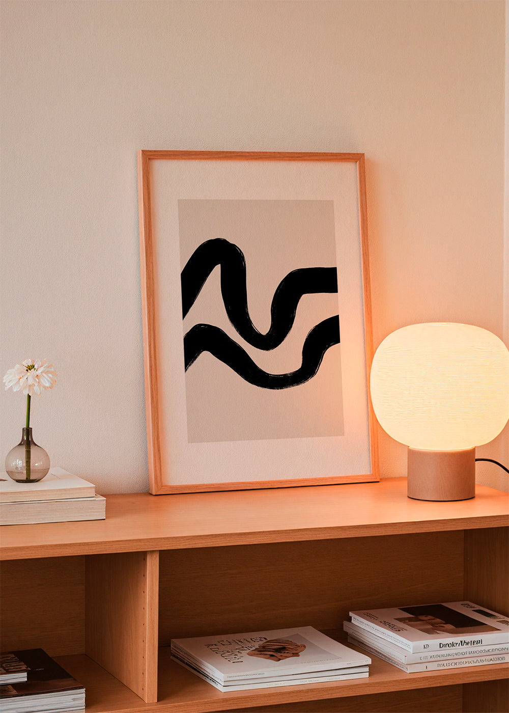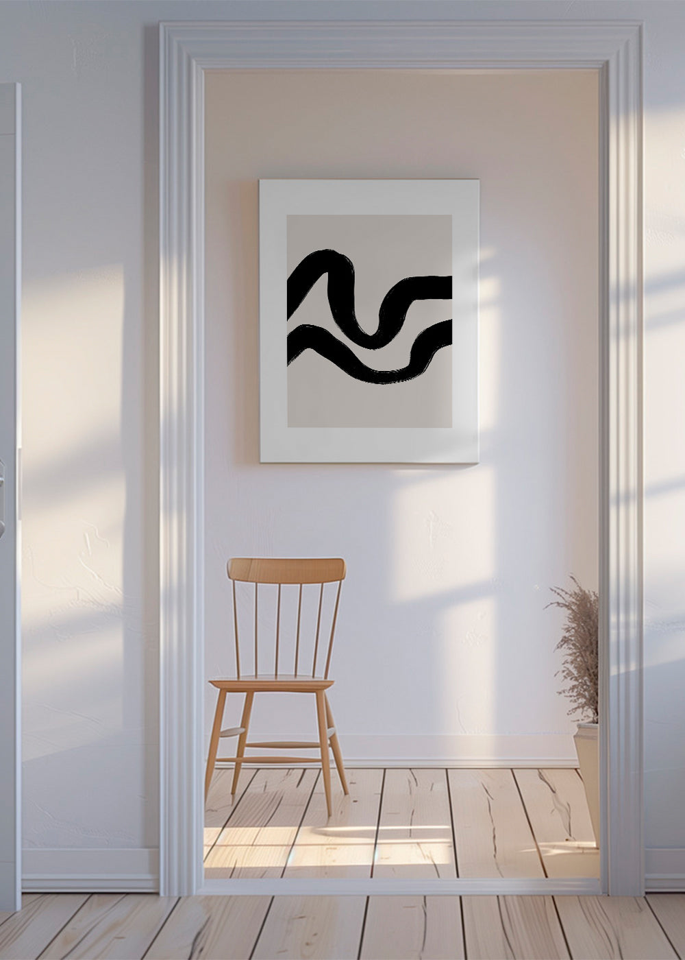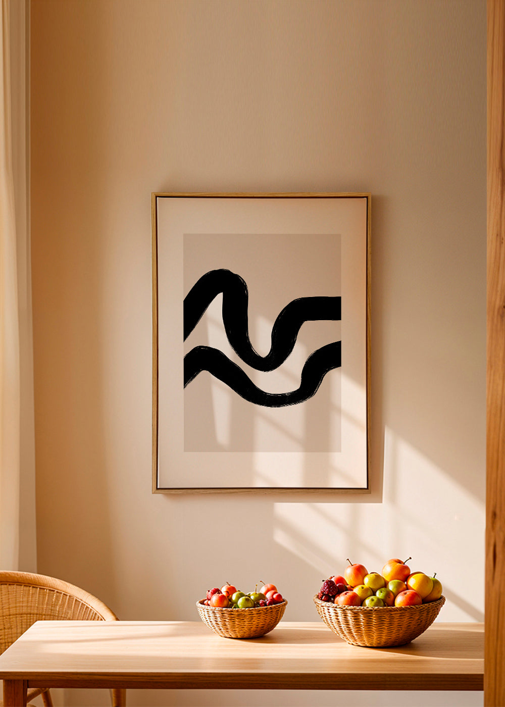 Un cuadro de la serie de cuadros de líneas, perteneciente a la colección de Alina Buffiere Studio, con tonalidades de colores negros, y de disposición vertical. Los cuadros con ilustraciones son ideales para combinar con arte minimalista y abstracto. Añade un poco de arte a la decoración de tu hogar.