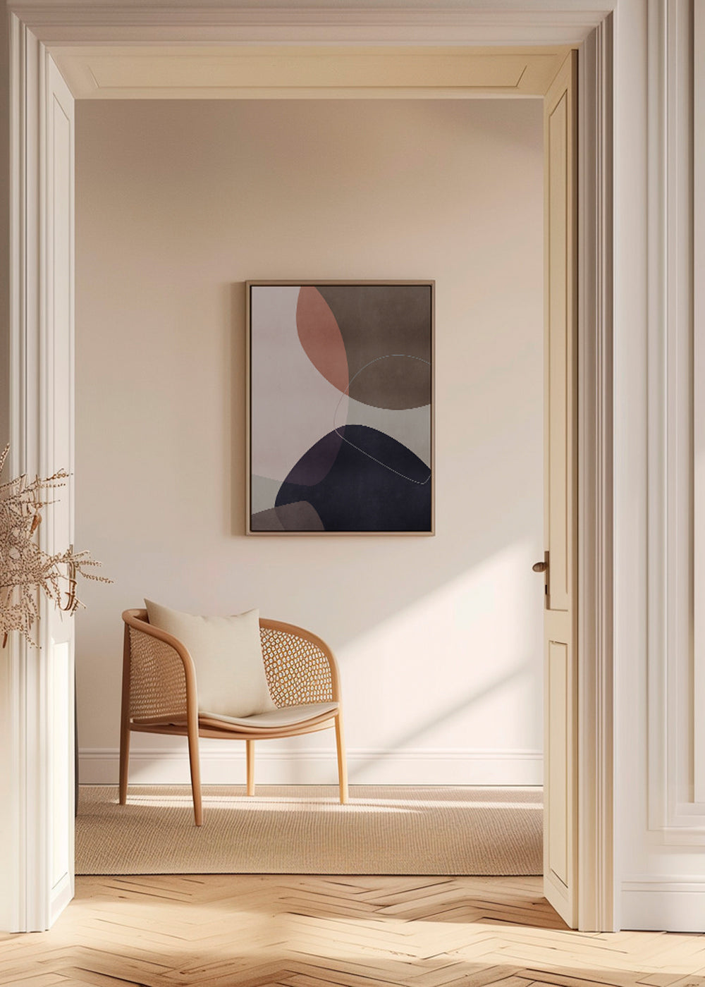 Un cuadro de nuestro conjunto de cuadros geométricos, perteneciente a la colección de Mareike Böhmer, con matices de tonos rosas, y para colgar en posición vertical. El arte geométrico es un estilo elegante para decorar las paredes del hogar. Un diseño precioso a la altura de tu decoración.