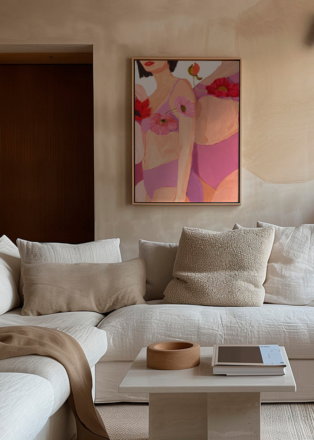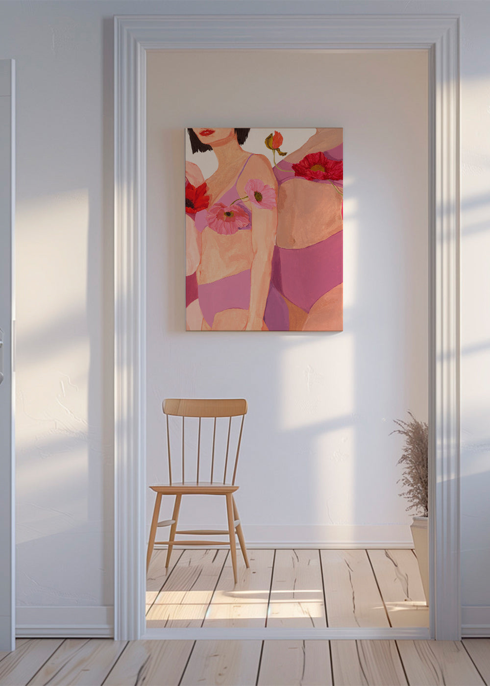 Una lámina del estilo de nuestros cuadros de mujeres, de Sophia Novosel, con colores rojos, y de disposición vertical. Los cuadros con ilustraciones son ideales para combinar con arte minimalista y abstracto. Una pieza que seguro dará un plus a la estancia.
