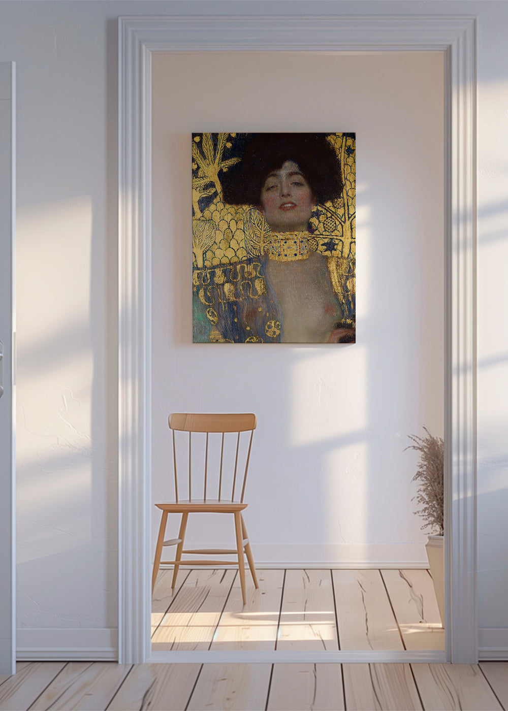 Una lámina con inspiración en nuestra colección de cuadros de pintores famosos, en tonos dorados, y de posición vertical. Entre nuestros cuadros famosos se encuentran algunas piezas imprescindibles para los amantes del arte clásico. Crea el ambiente perfecto.