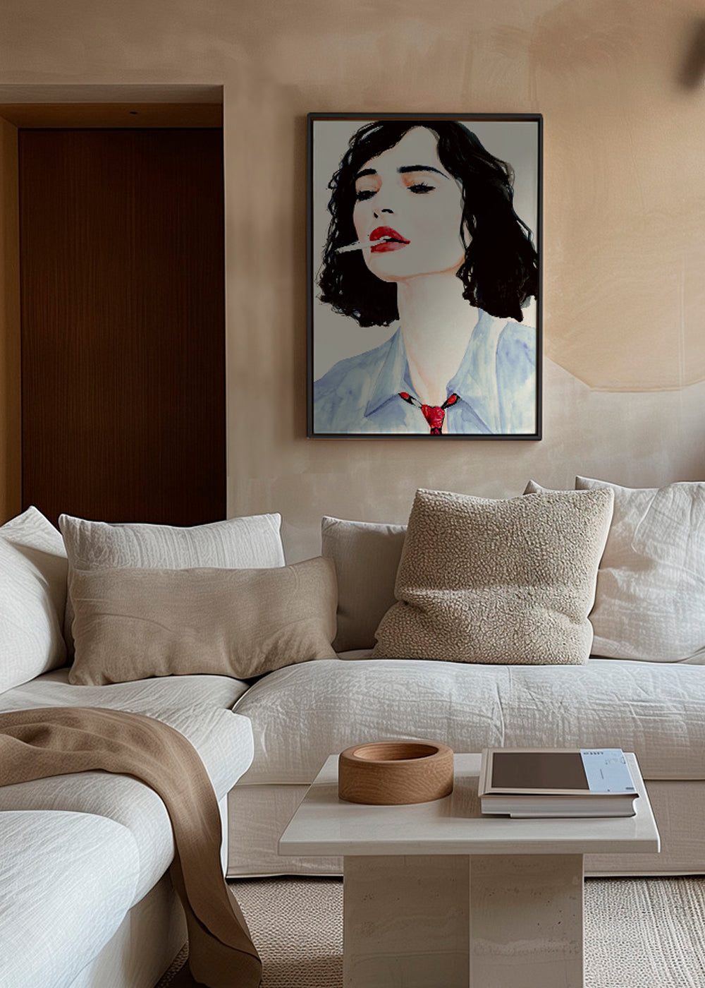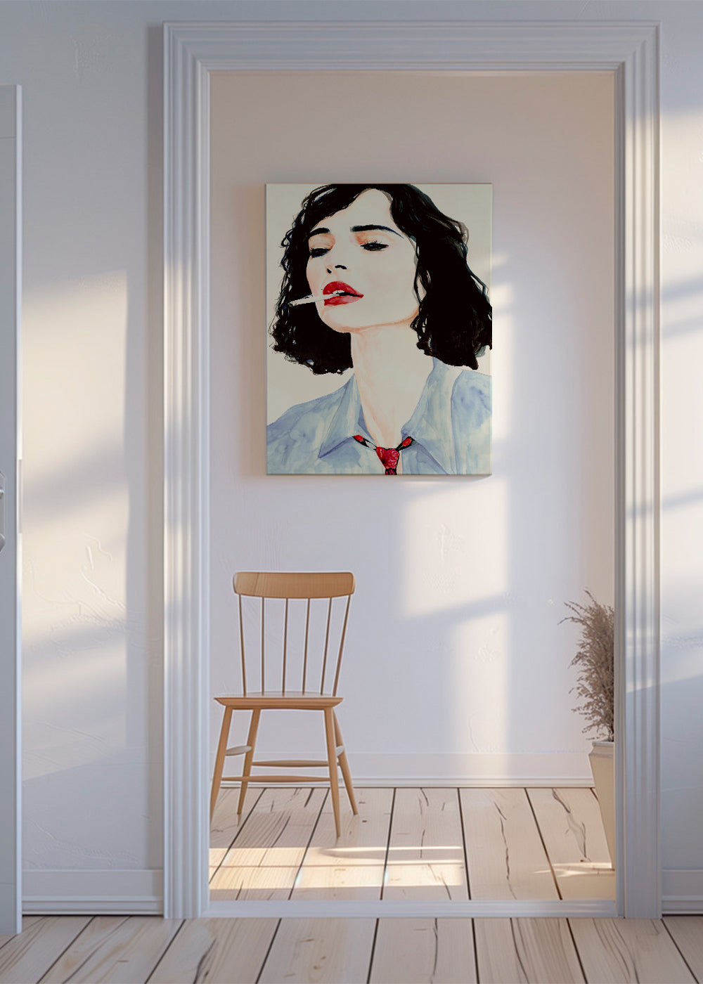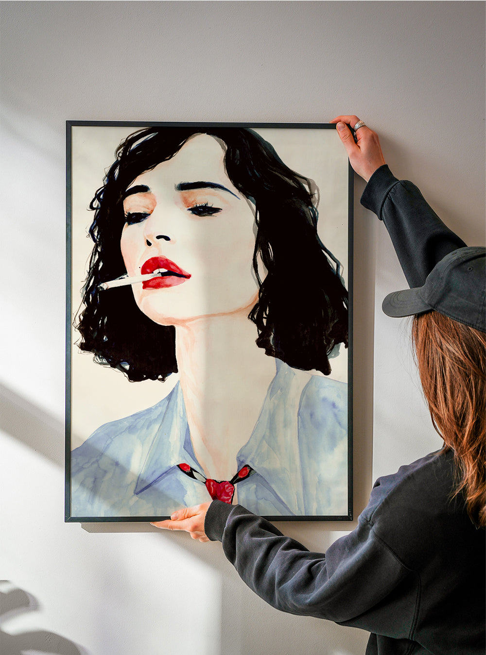 Bonita obra con inspiración en nuestra colección de cuadros de mujeres, hecha por Sophia Novosel, con tonalidades de colores rojos, y en formato vertical. Las láminas con ilustraciones son perfectas para llenar las paredes de creatividad. Deja que el arte inunde tu hogar.