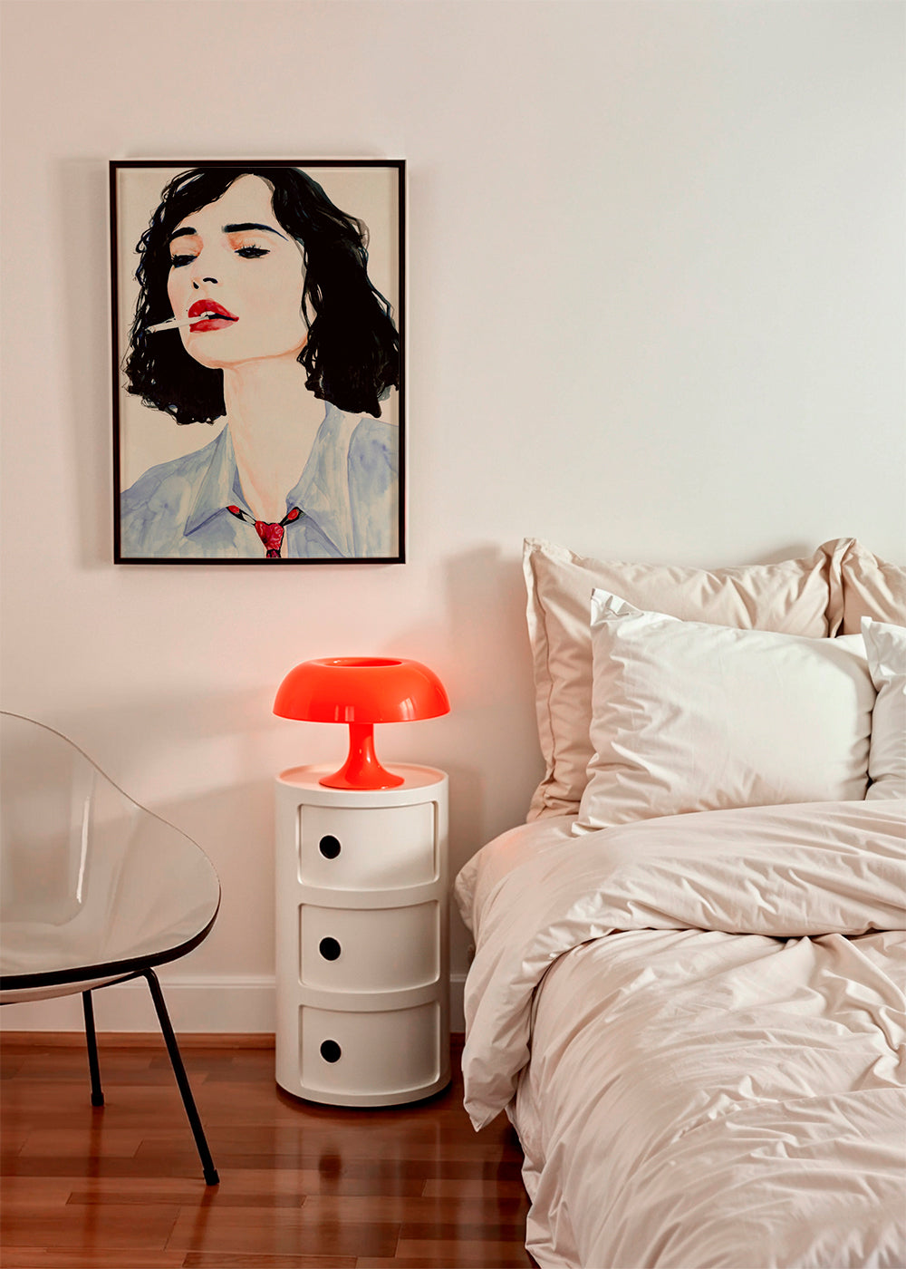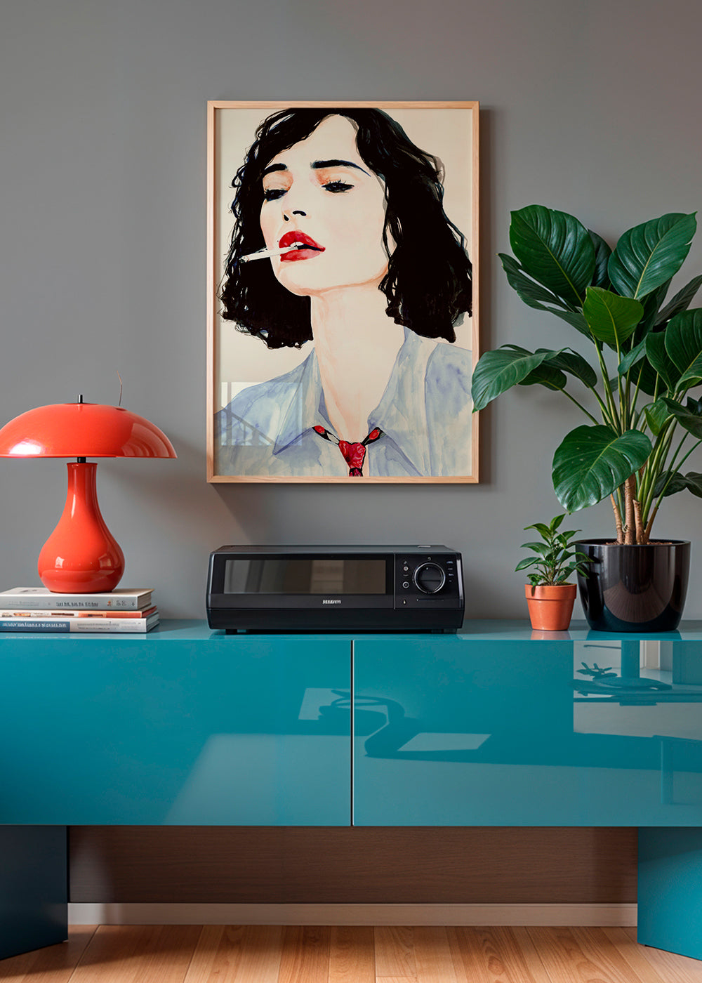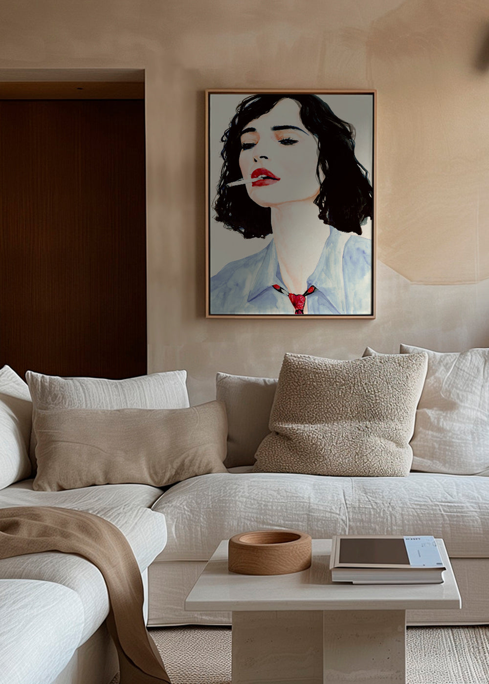 Bonita obra con inspiración en nuestra colección de cuadros de mujeres, hecha por Sophia Novosel, con tonalidades de colores rojos, y en formato vertical. Las láminas con ilustraciones son perfectas para llenar las paredes de creatividad. Deja que el arte inunde tu hogar.
