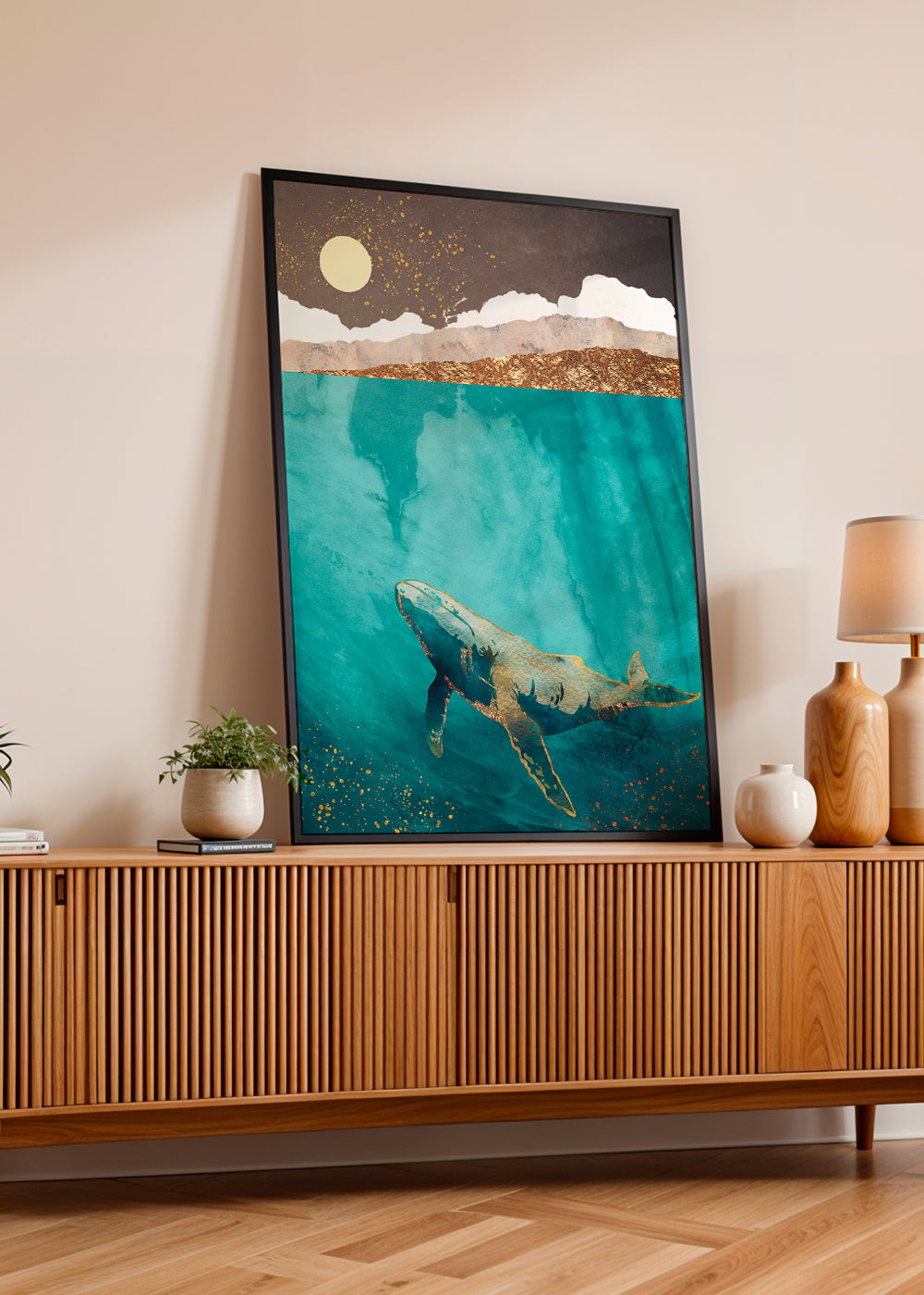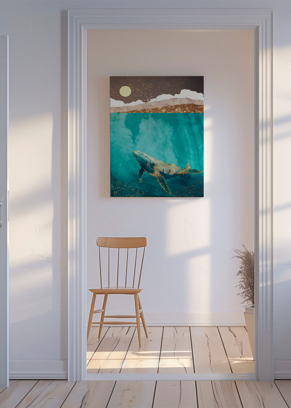 Una lámina de nuestro repertorio de cuadros de animales, de SpaceFrog Designs, en tonalidades de colores azules, y para colocar en posición vertical. La naturaleza en su máximo esplendor, los cuadros con paisajes transmiten mucha calma. Convierte tu casa en un hogar lleno de estilo.