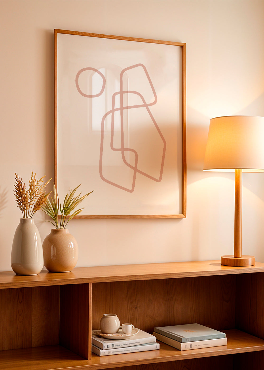 Este póster de nuestra categoría de cuadros de líneas, hecha por Nouveau Prints, de matices rosas, y para colgar en posición vertical. Los cuadros geométricos son una buena opción para decorar espacios modernos y vanguardistas. Deja que el arte inunde tu hogar.