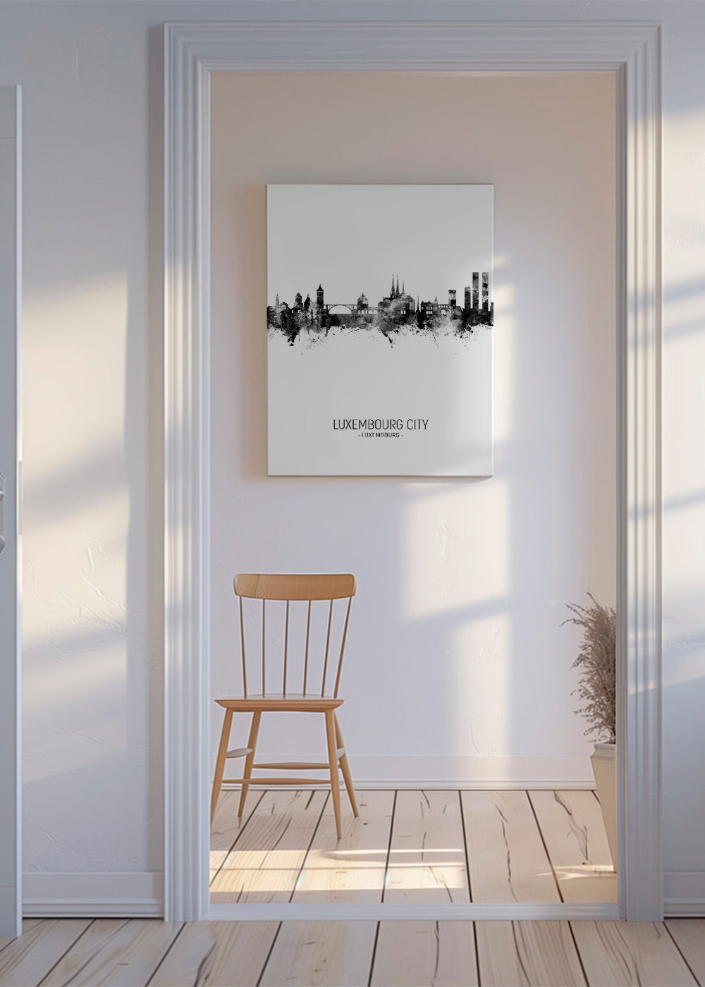 Cuadro nórdico Luxembourg City Skyline blanco y negro