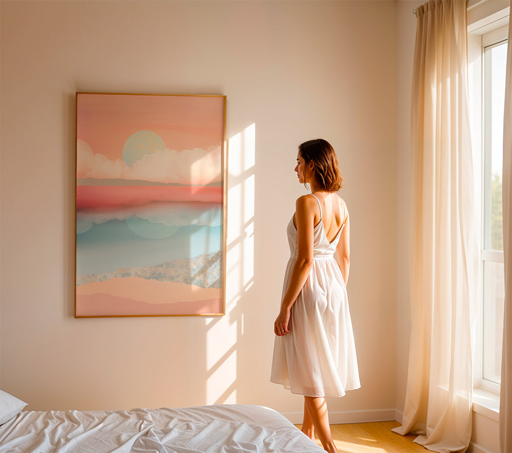 - Enmarcado gratuito: al escoger un marco, recibirás tus cuadros enmarcados y listos para colgar.