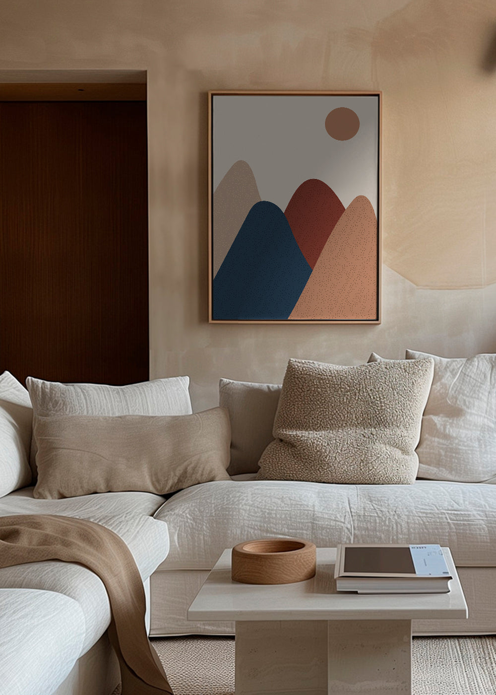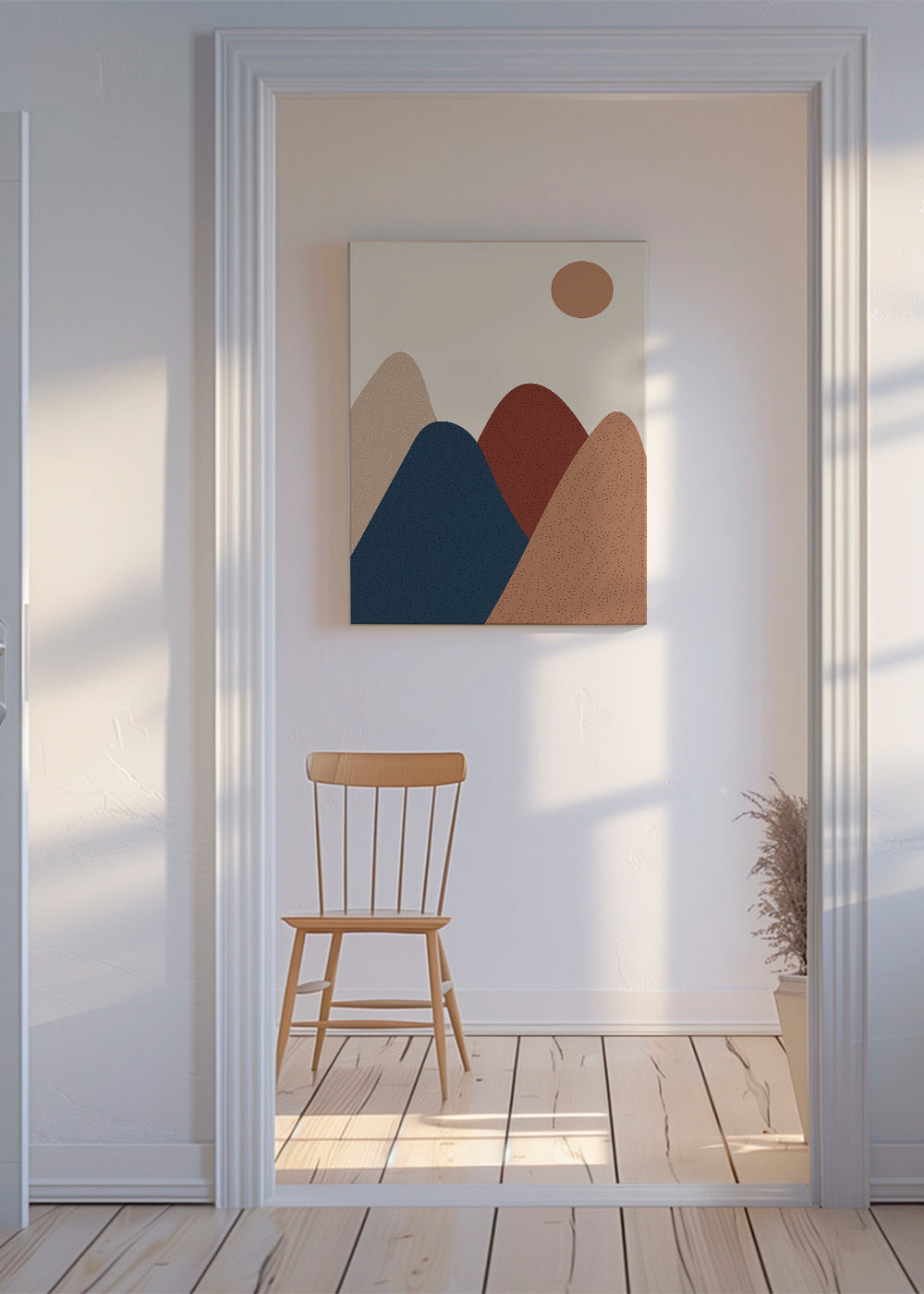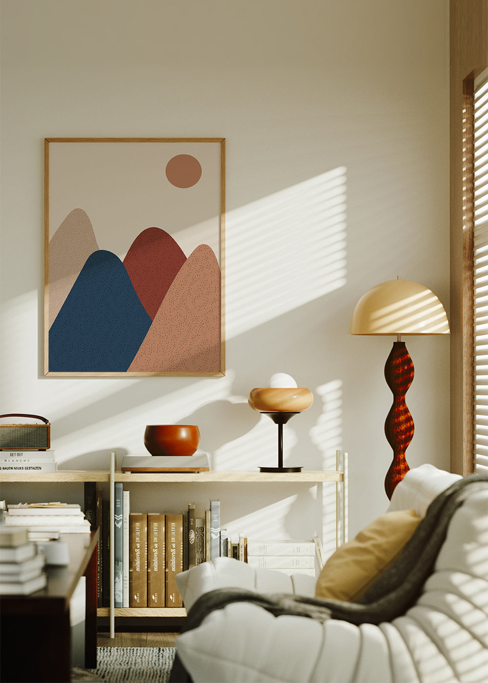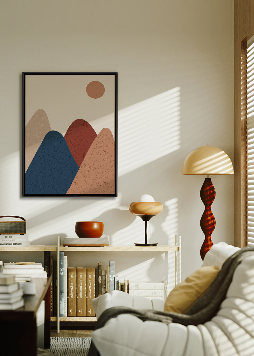 Este póster de la serie de cuadros de montañas, de Essentially Nomadic, con matices de tonos rojos, y con orientación vertical. La tranquilidad y libertad que transmiten los cuadros de paisajes es única. Este es el cuadro que tu pared estaba buscando.