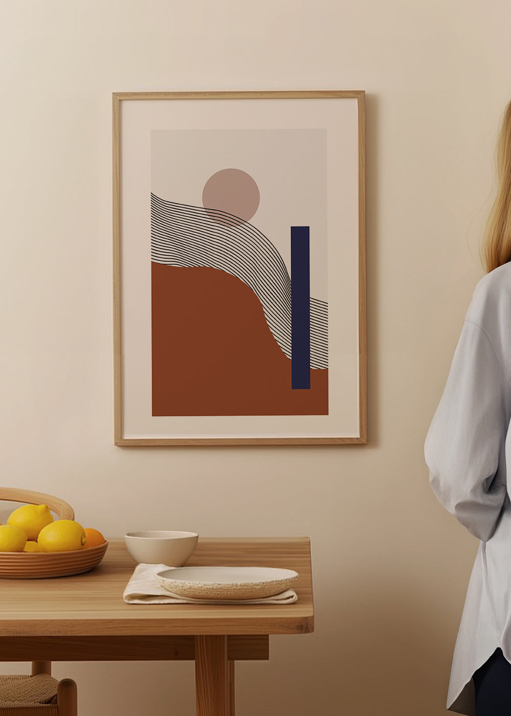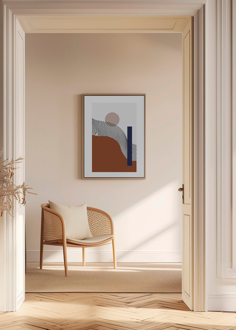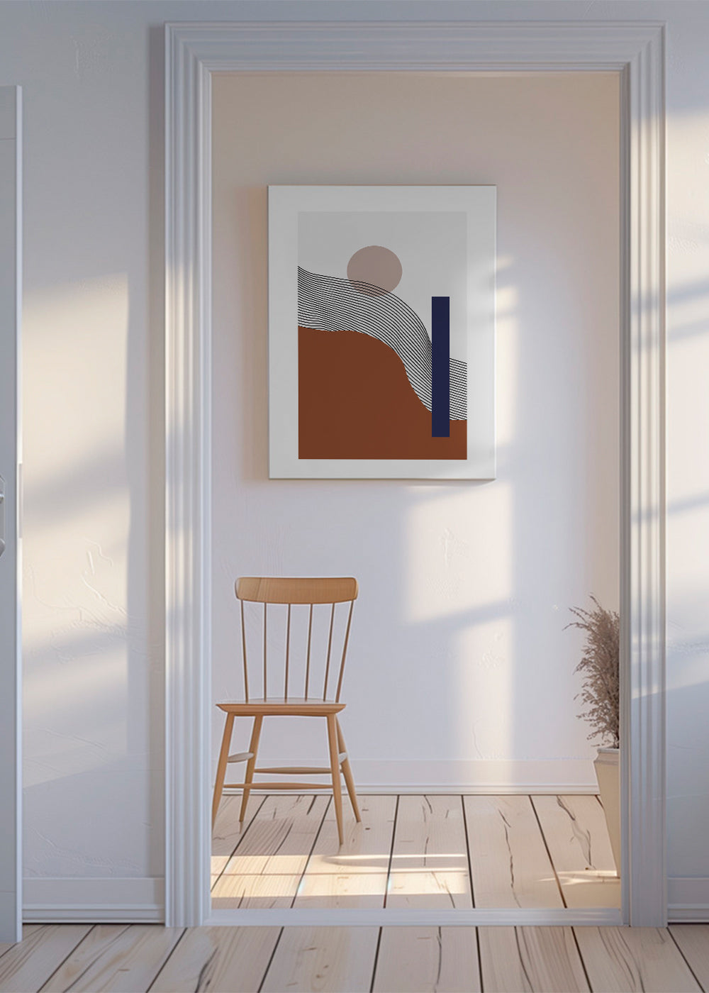 Un diseño de nuestra colección de cuadros geométricos, creada por Studio Krone Kern, con matices de colores marrones, y de disposición vertical. Los cuadros geométricos son una buena opción para decorar espacios modernos y vanguardistas. Dales vida a las paredes de tu casa. El margen blanco que envuelve a la imagen potencia la expresividad de la obra.