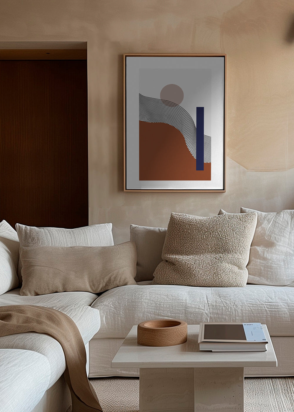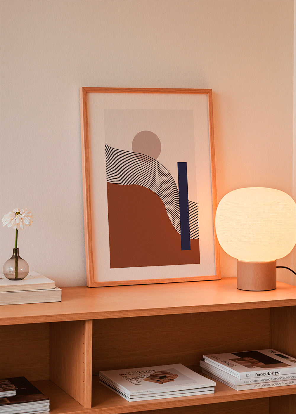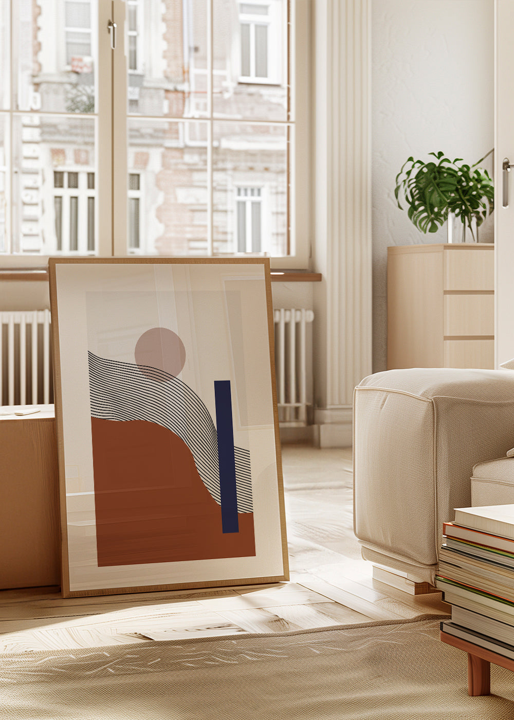 Un diseño de nuestra colección de cuadros geométricos, creada por Studio Krone Kern, con matices de colores marrones, y de disposición vertical. Los cuadros geométricos son una buena opción para decorar espacios modernos y vanguardistas. Dales vida a las paredes de tu casa. El margen blanco que envuelve a la imagen potencia la expresividad de la obra.