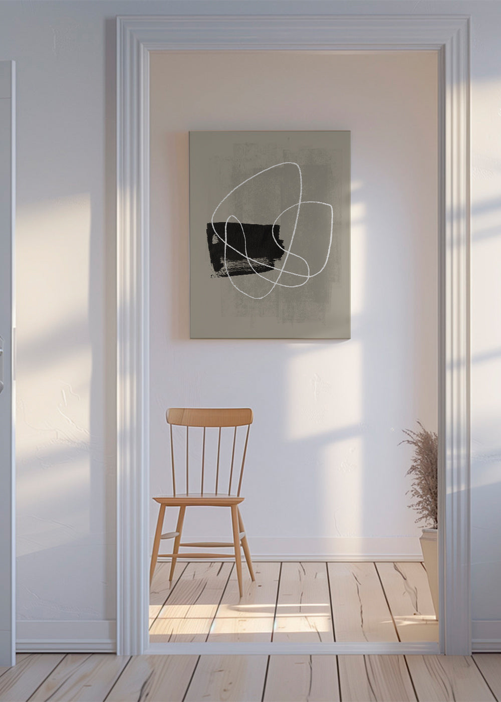Un póster con inspiración en nuestra colección de cuadros y láminas con ilustraciones, concebida por Nouveau Prints, con tonos grises, y de disposición vertical. Los cuadros con ilustraciones son ideales para combinar con arte minimalista y abstracto. Una pared vacía es una pared triste, pero con unos cuadros le sacaremos una sonrisa.