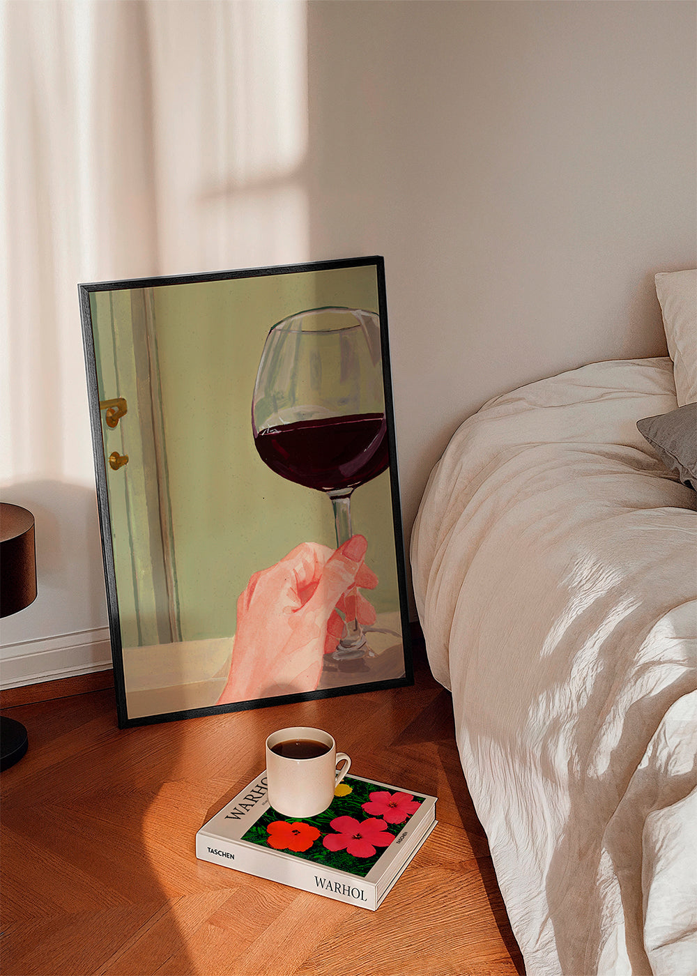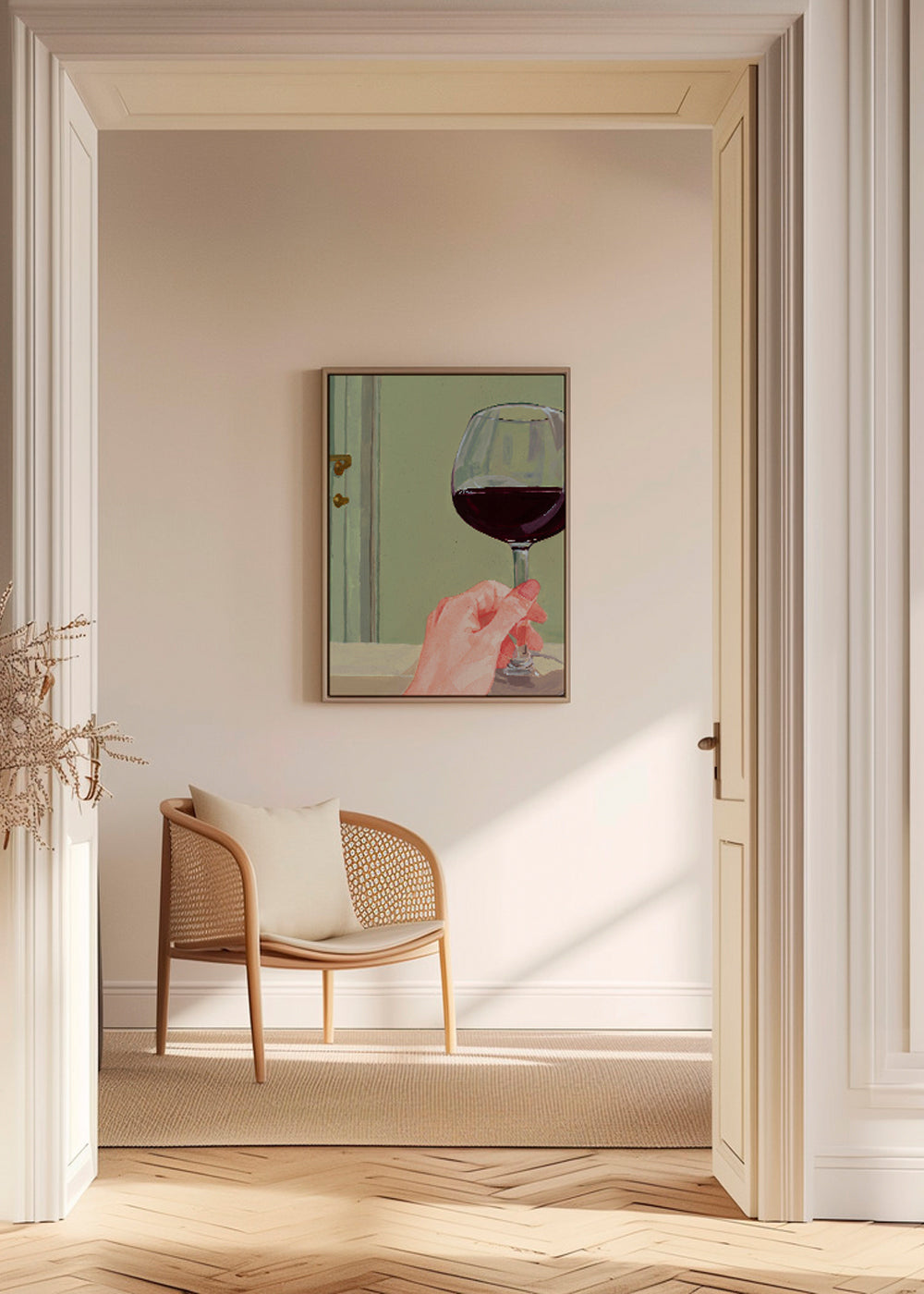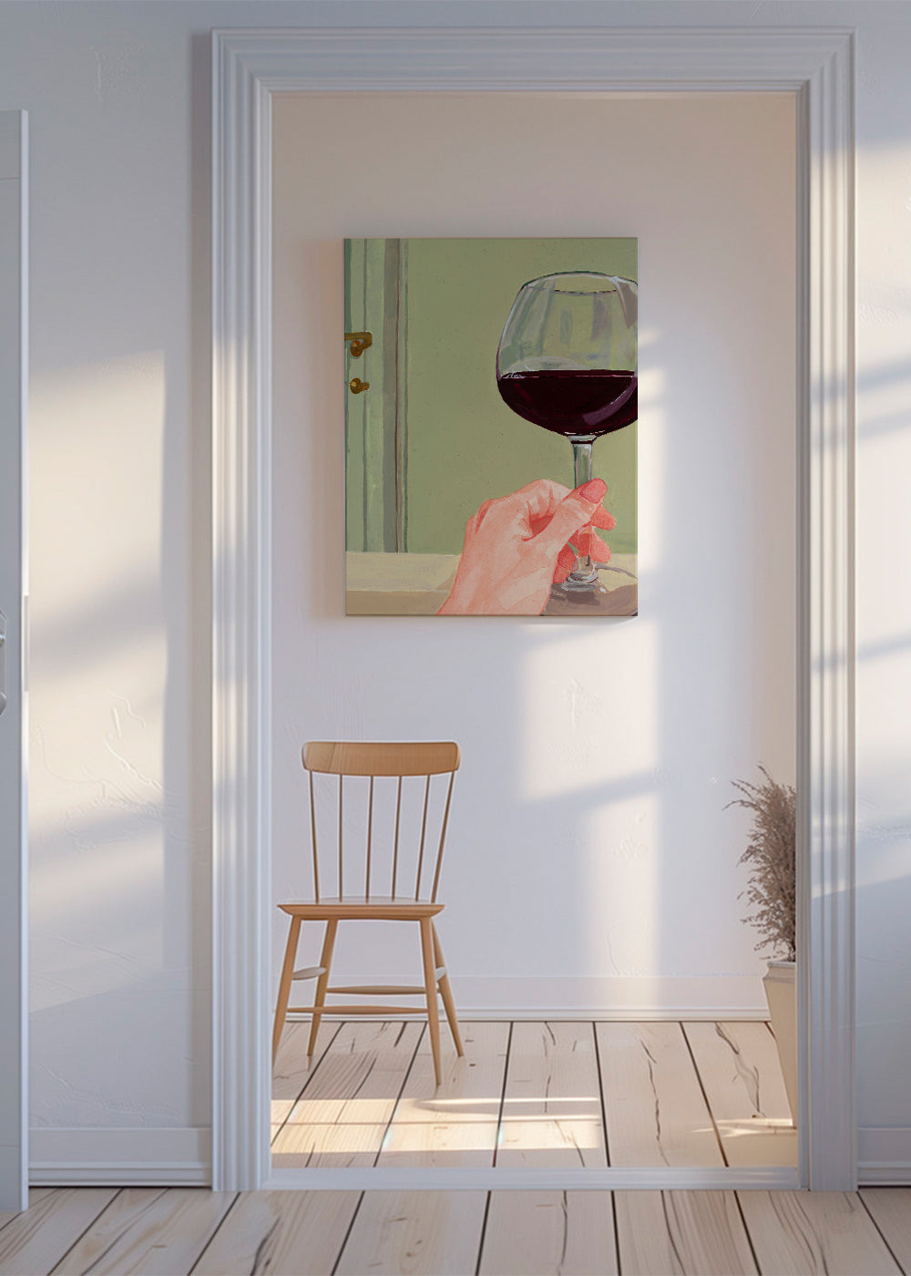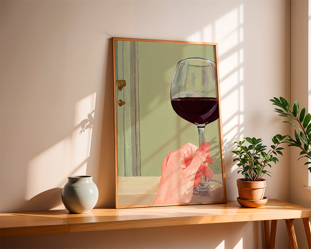 Una obra perteneciente a la categoría de cuadros de vinos, concebida por Sophia Novosel, de matices rojos, y de posición vertical. Convierte tu cocina en un espacio divertido con este y otros cuadros de cocina. Elegancia inspirada por el arte.