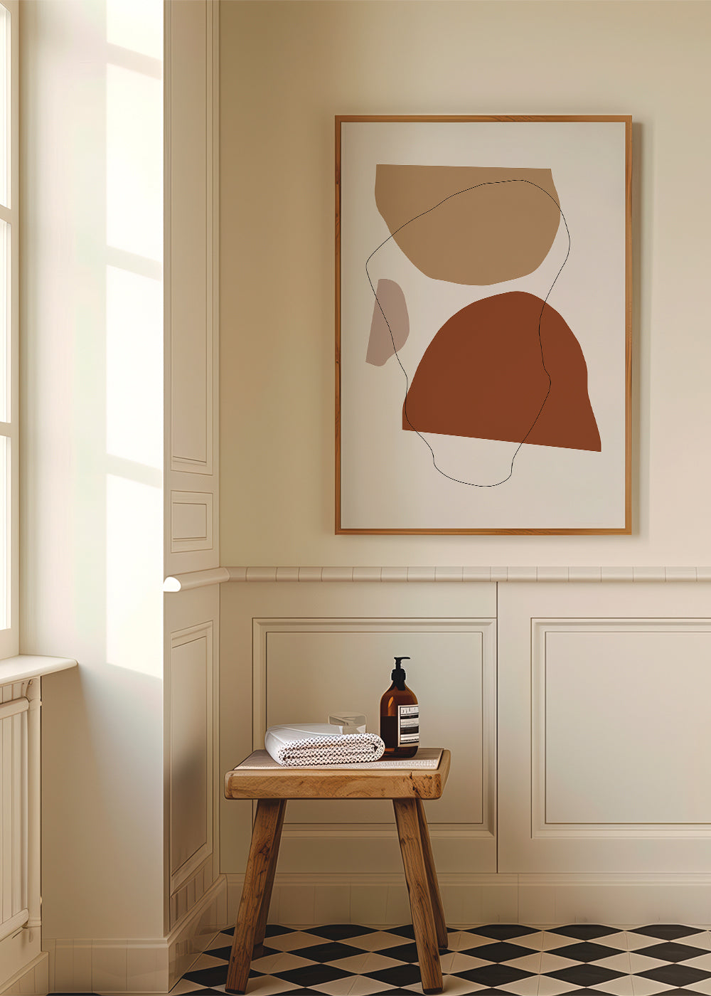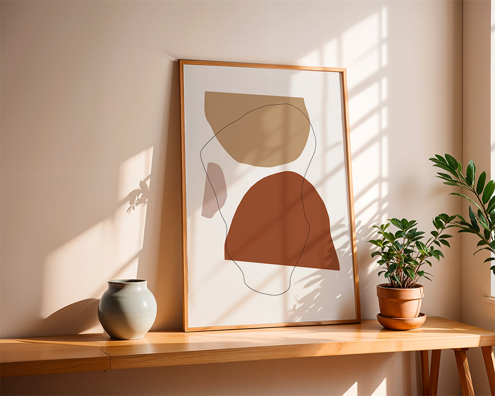 Este cuadro de la colección cuadros geométricos, que nos presenta Studio Krone Kern, con colores marrones, y de formato vertical. Esta obra con formas abstractas es ideal para combinar con cuadros geométricos y arte abstracto. Un toque moderno para tu hogar.