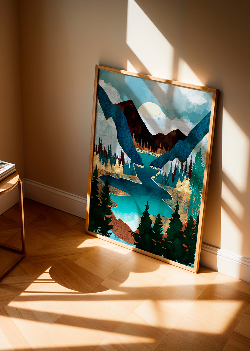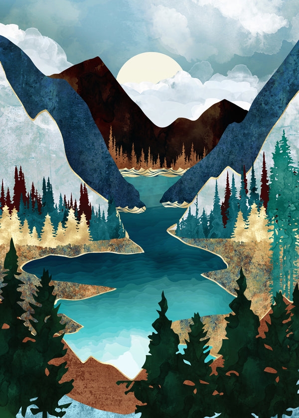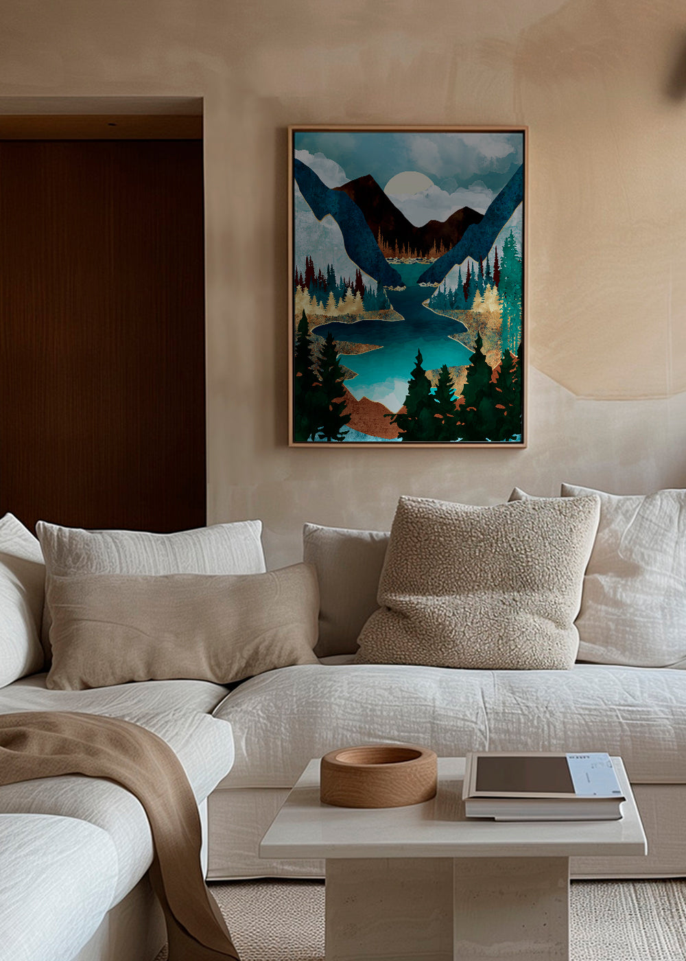Un cuadro de nuestro conjunto de cuadros de paisajes y naturaleza, de SpaceFrog Designs, con colores azules, y para colocar en posición vertical. La tranquilidad y libertad que transmiten los cuadros de paisajes es única. Un diseño precioso a la altura de tu decoración.
