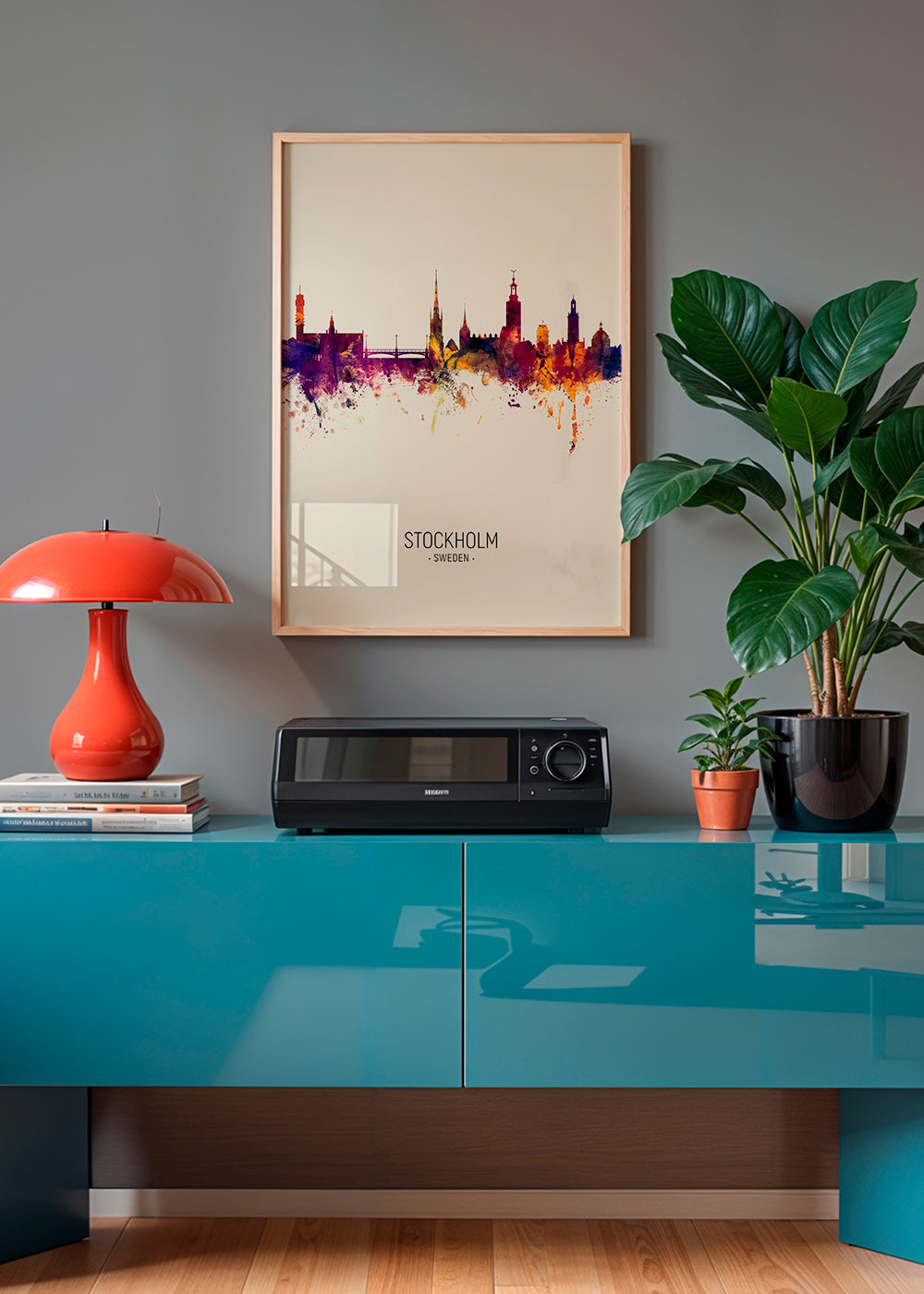 Cuadro nórdico Stockholm Skyline beige
