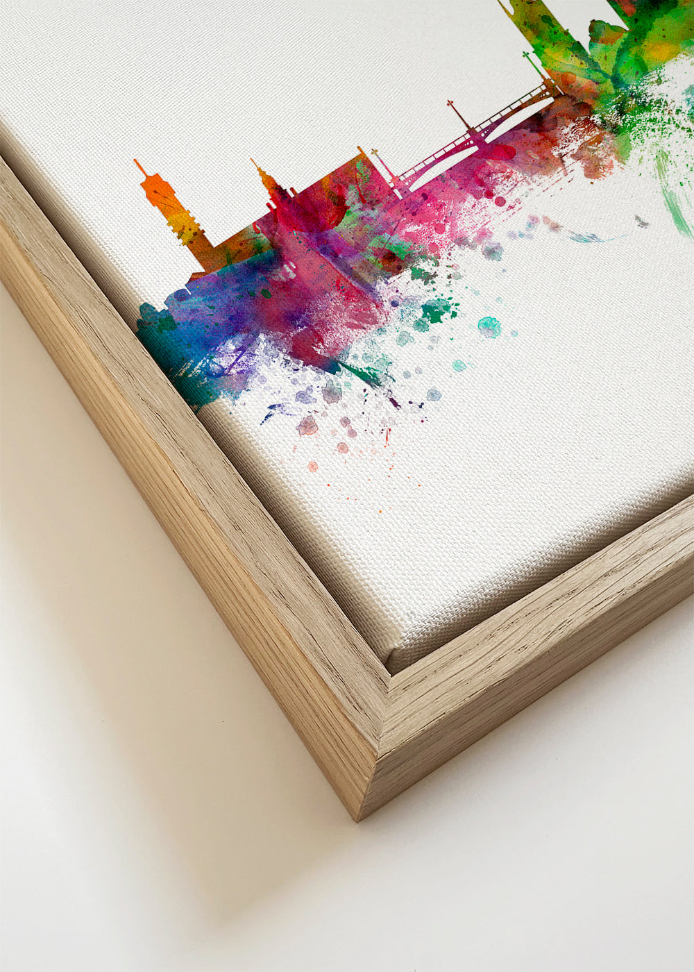 Un póster de nuestro conjunto de cuadros de skylines, creada por Michael Tompsett, con colores multicolor, y para colocar en posición horizontal. Si te gusta pasar horas caminando sin rumbo mientras descubres nuevos rincones del mundo, este cuadro es para ti. Cambia el look de tus estancias añadiendo arte.