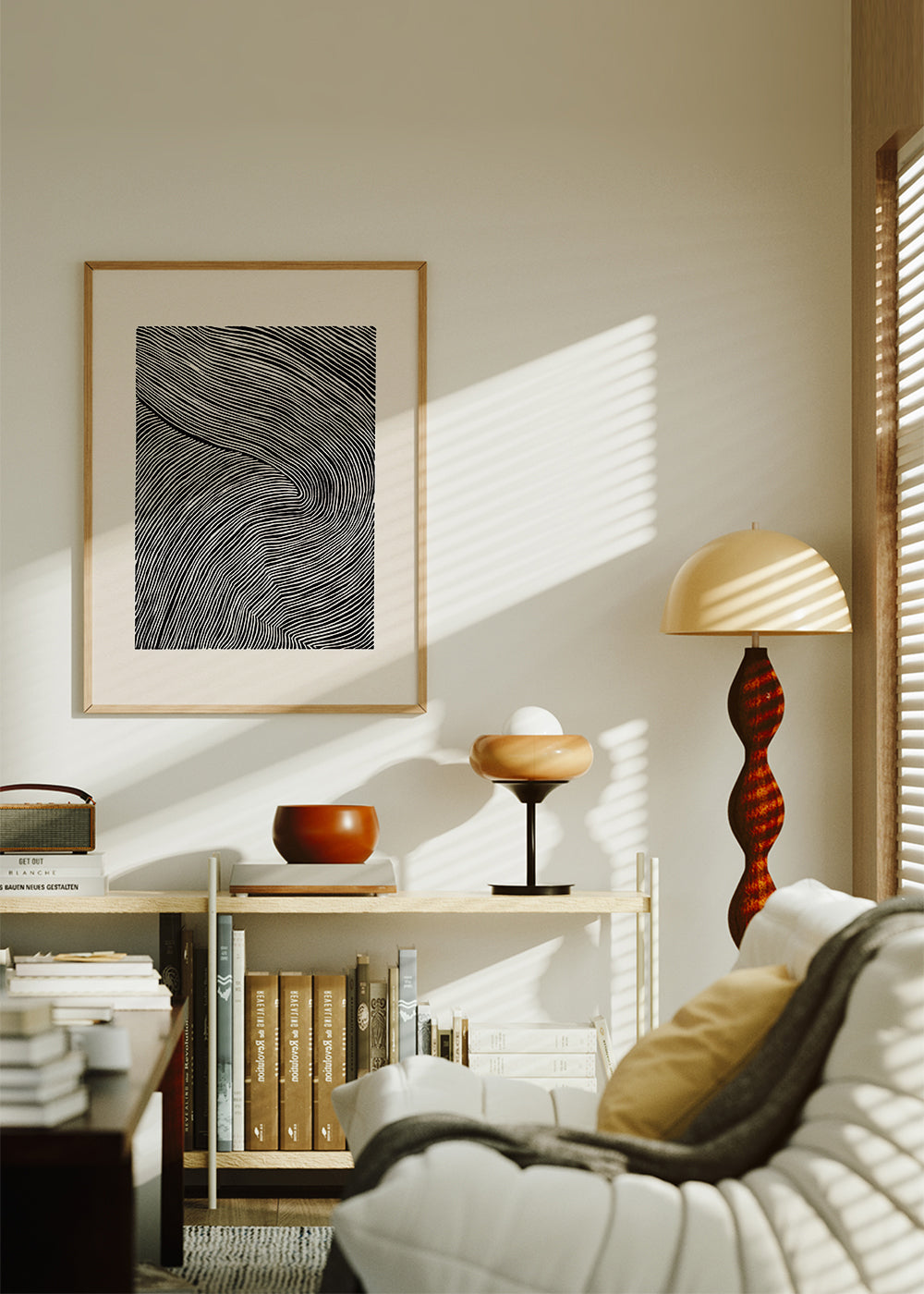 Cuadro nórdico Stripes linocut Nº1 - Black and white