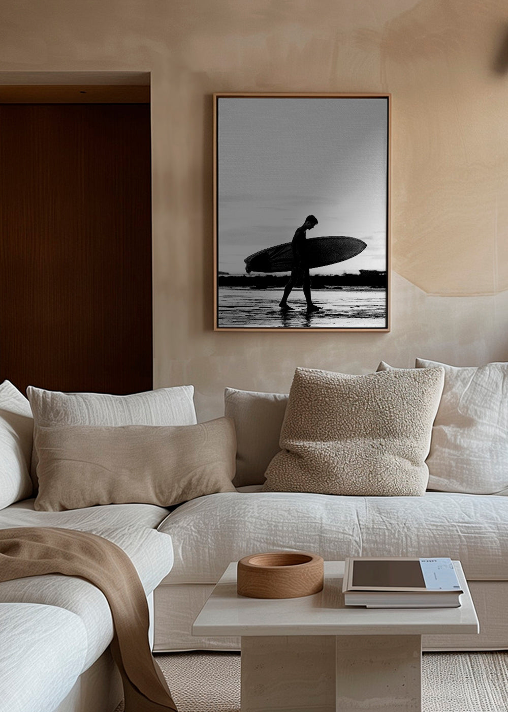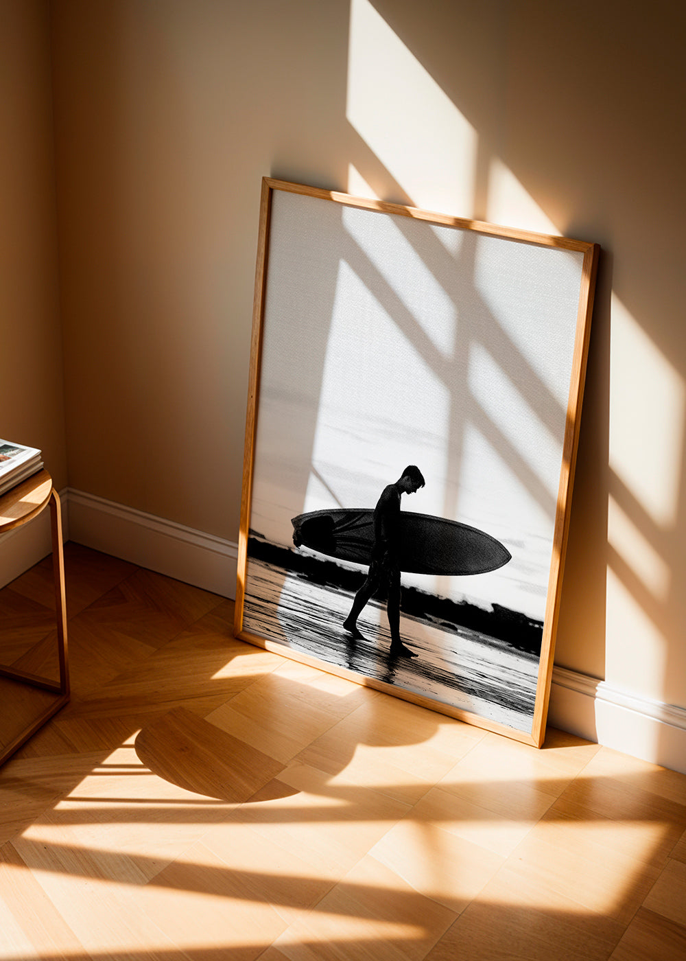 Un cuadro de nuestra colección de cuadros de surf, que nos presenta Gal Design, con toques monocromáticos, y ideal para poner en posición vertical. La tranquilidad y libertad que transmiten los cuadros de paisajes es única. Paredes elegantes para hogares chic.