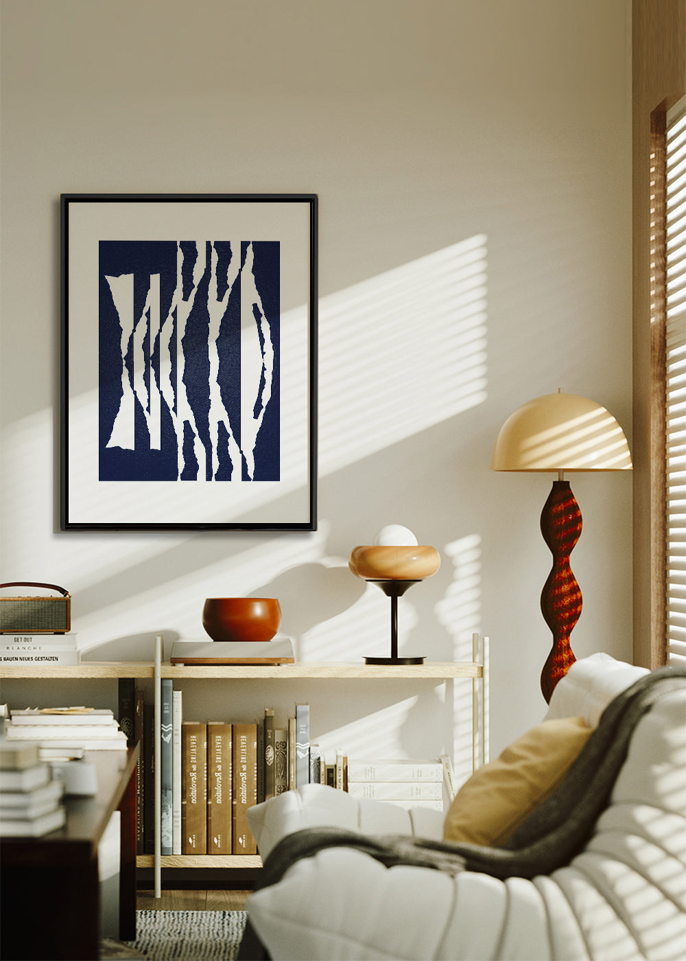 Esta lámina de nuestra selección de cuadros abstractos, que nos presenta Anna Mainz, en tonos azules, y para colgar en posición vertical. Se trata de una obra abstracta ideal para prácticamente cualquier espacio del hogar. Déjate cautivar por el arte. Esta obra incluye un margen blanco que enmarca el diseño para potenciar su estilo.