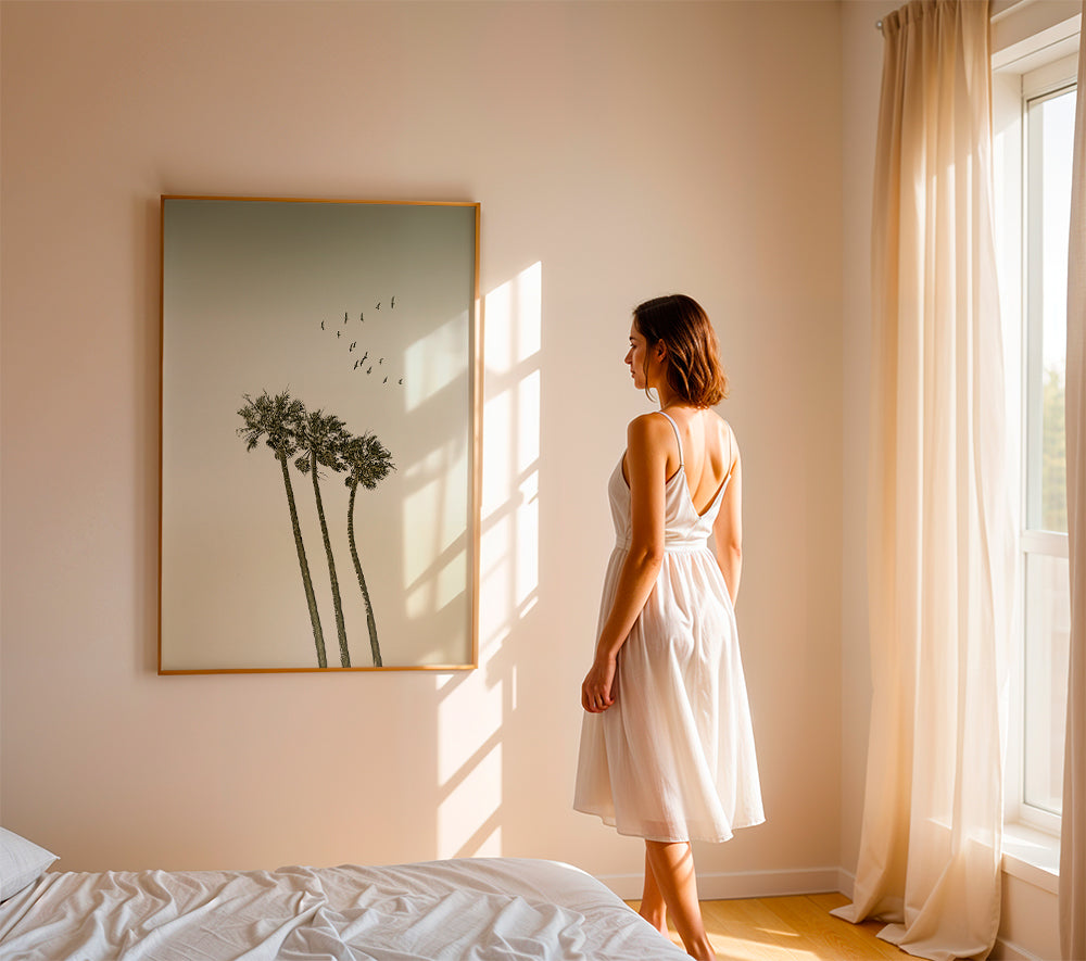 - Enmarcado gratuito: al escoger un marco, recibirás tus cuadros enmarcados y listos para colgar.