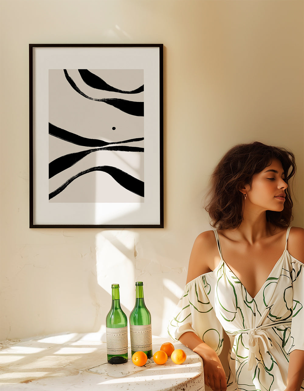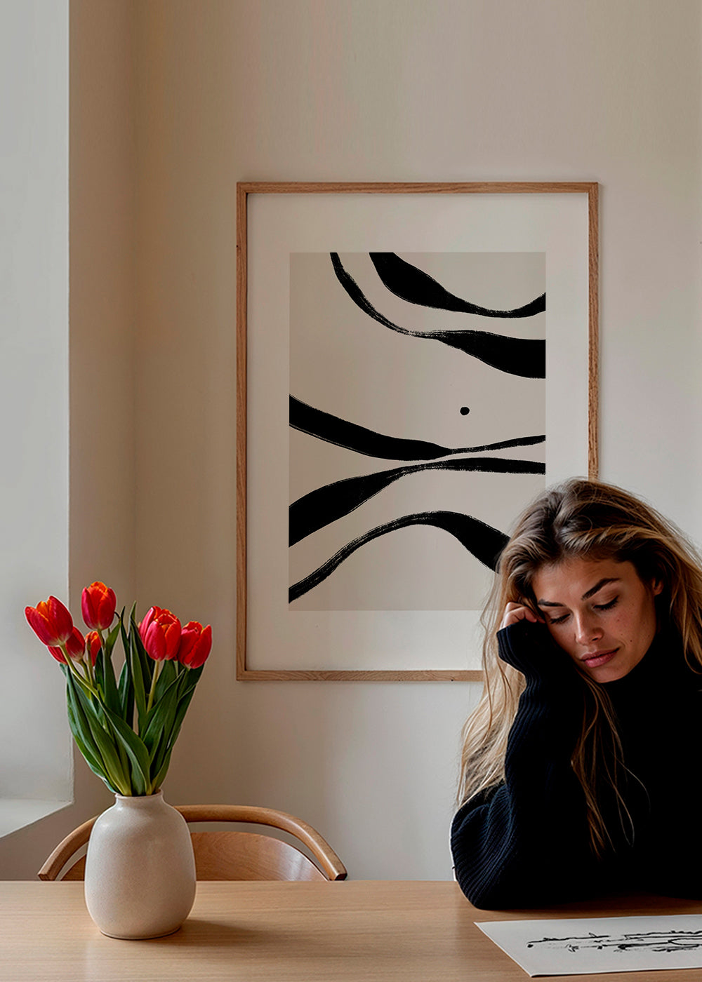 Bonita lámina del estilo de nuestros cuadros de líneas, concebida por Alina Buffiere Studio, con toques negros, y en formato vertical. Se trata de una ilustración de estilo sencillo y limpio, combínala con otras ilustraciones para obtener una composición artística. Deja que tus paredes cuenten historias.
