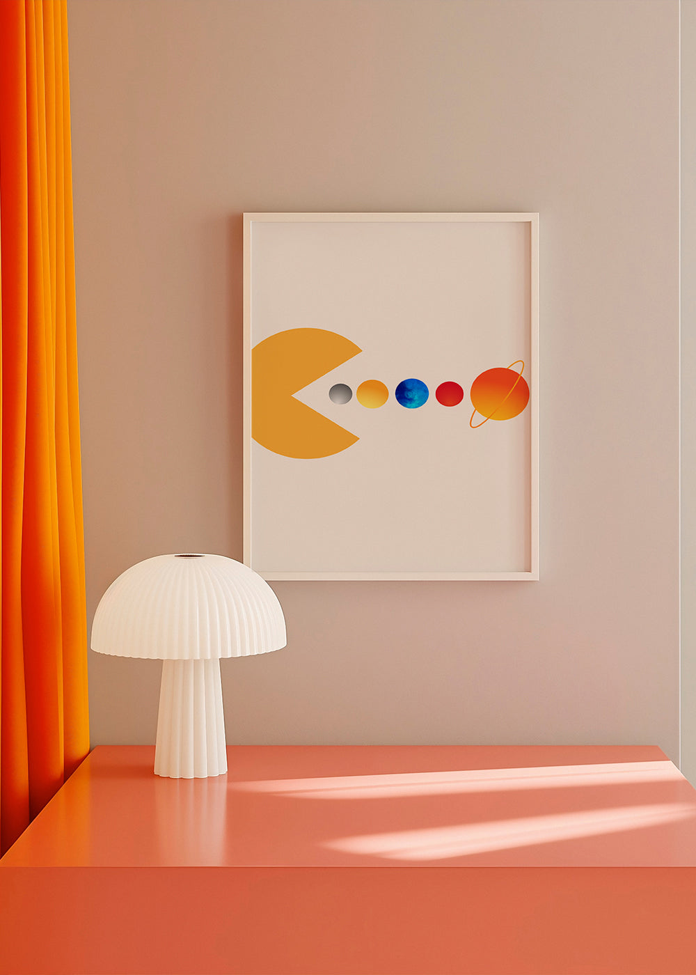 Un póster del estilo de nuestros cuadros del espacio, de la mano de Kubistika, con toques rojos, y de formato vertical. Un póster retro que puedes combinar con otros posters de estilo vintage para dar un toque original al hogar. Viste las paredes de tu hogar.