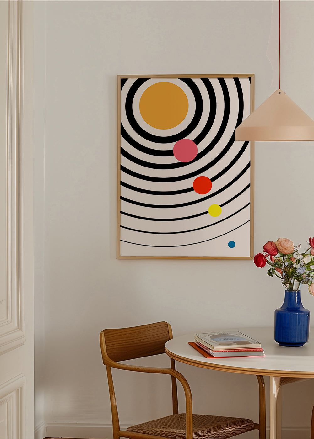 Bonito cuadro de nuestro repertorio de cuadros del espacio, de la mano de Kubistika, en tonalidades de colores rojos, y en formato vertical. Una obra de estilo retro ideal para una decoración con toques vintage. Una pared con cuadros puede cambiar todo el look de una estancia.