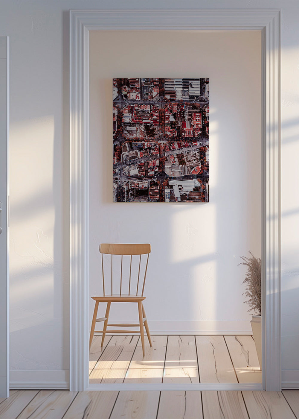 Este cuadro de nuestra colección de cuadros y láminas de arquitectura, de la mano de Chris Abatzis, con tonalidades de colores rojos, y para colgar en posición vertical. Un cuadro ideal para los viajeros empedernidos. Combínalo con otros de nuestros cuadros de mapas y ciudades. Una pieza que seguro dará un plus a la estancia.
