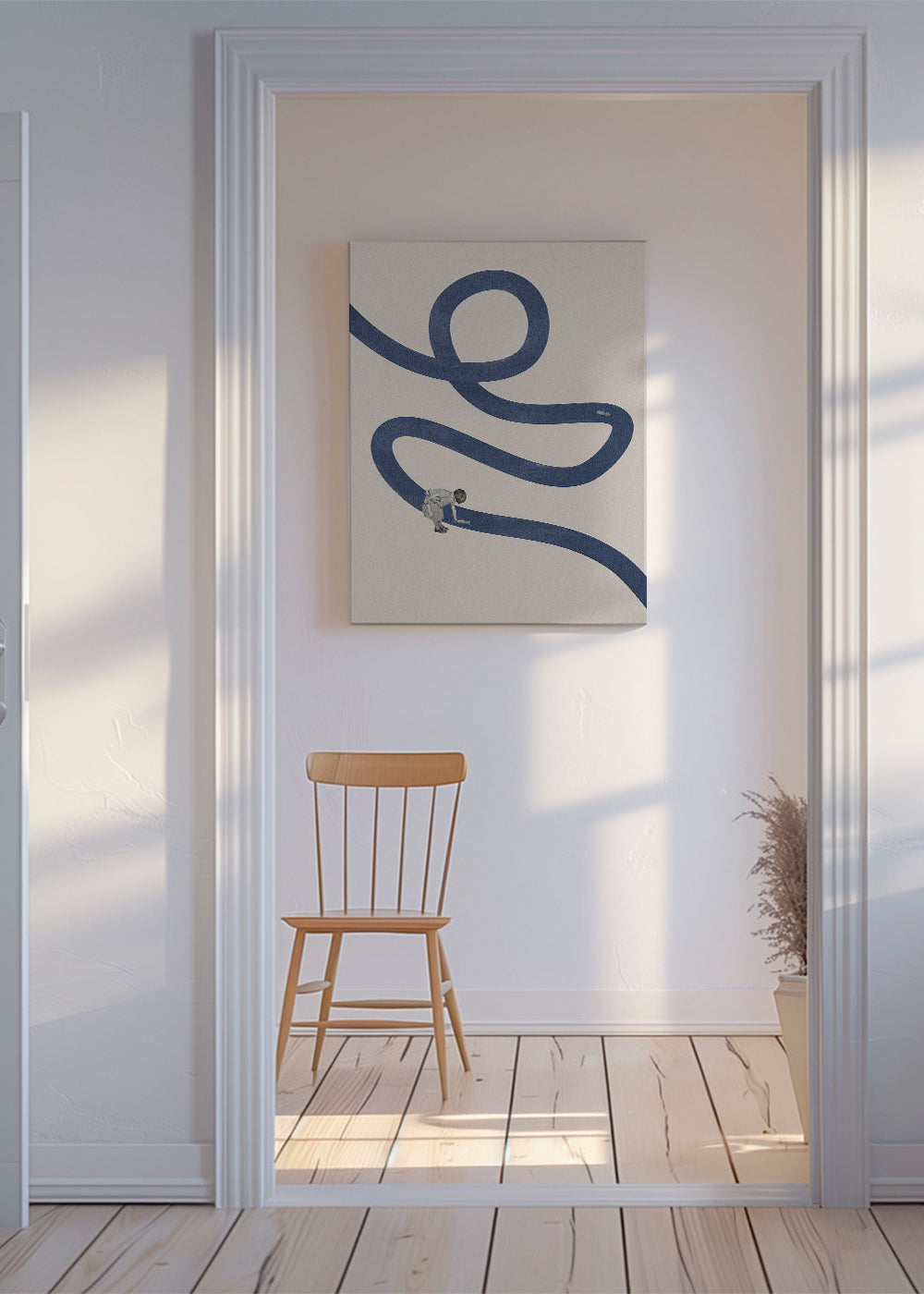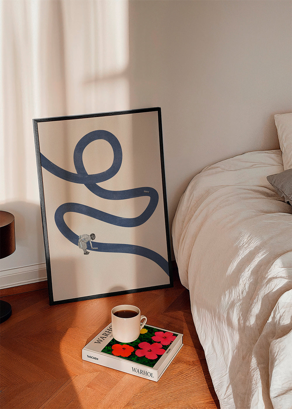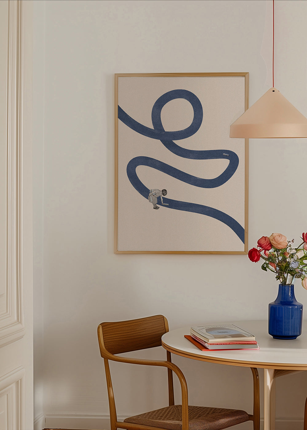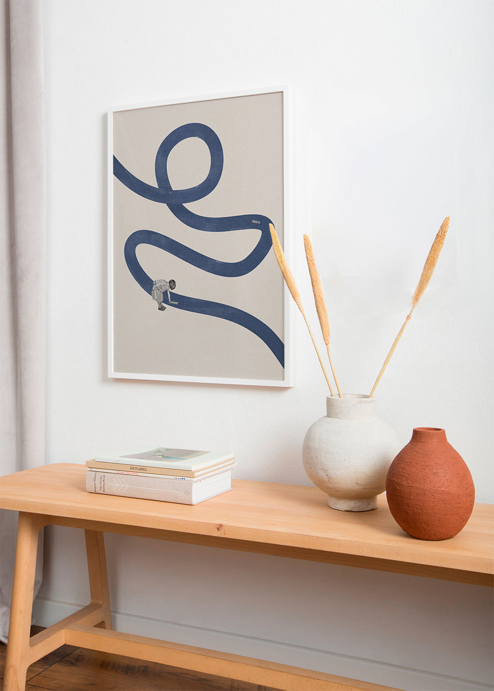 Un póster de la serie de posters y láminas retro y vintage, de la colección de Maarten Léon, con colores azules, y en formato vertical. Si estás buscando un elemento retro para añadir a la decoración, este diseño es ideal para ti. Combínalo con otros posters vintage para conseguir un estilo súper original. Un toque moderno para tu hogar.