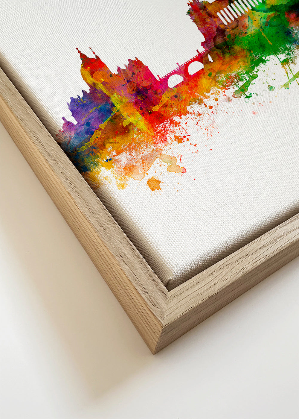 Un diseño con inspiración en nuestra colección de cuadros de skylines, que nos presenta Michael Tompsett, con matices de tonos multicolor, y orientada en horizontal. Viaja sin tener que moverte del sofá con esta y otras de nuestras láminas de mapas y ciudades. Siempre es un buen momento para un cambio en u hogar.