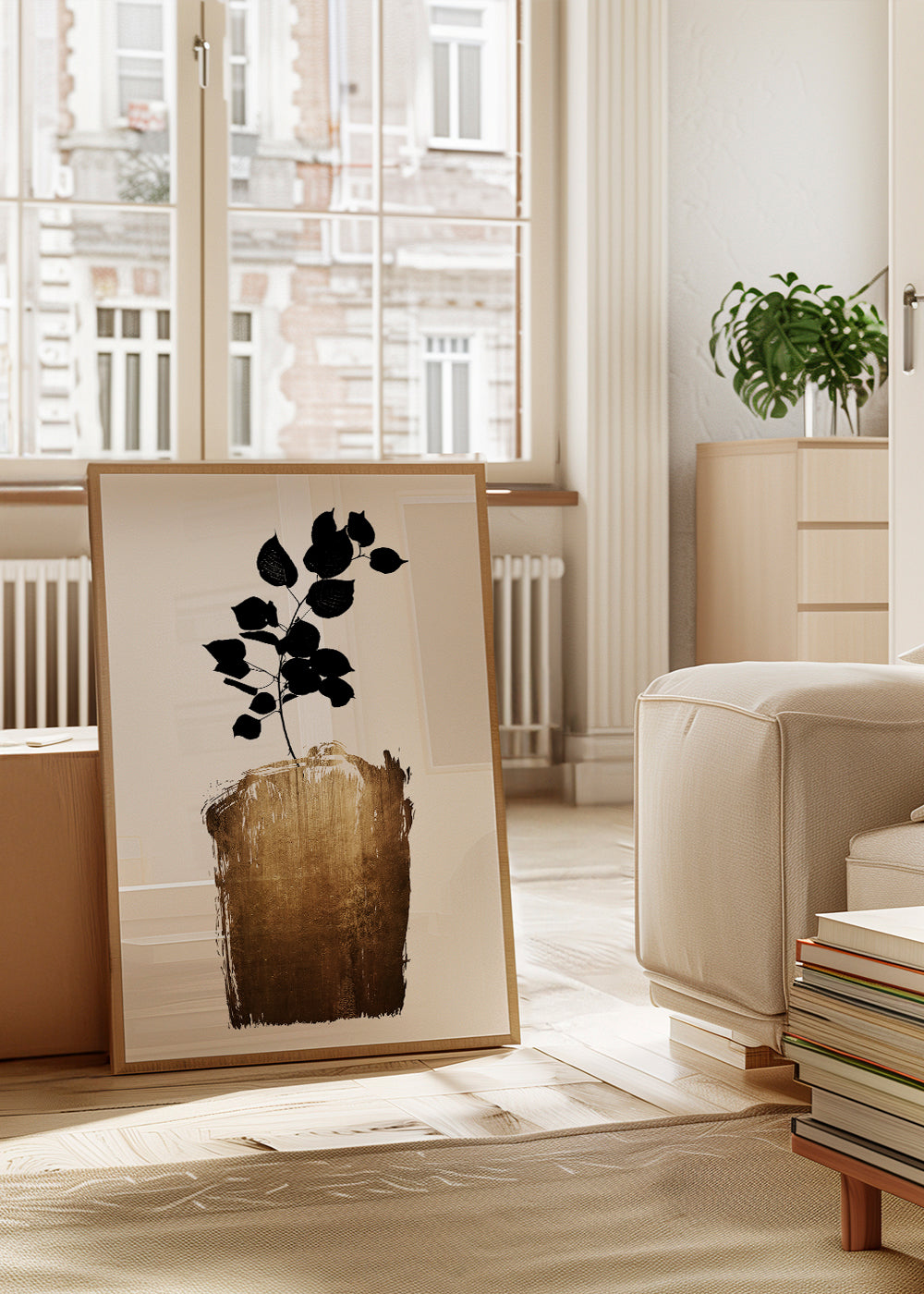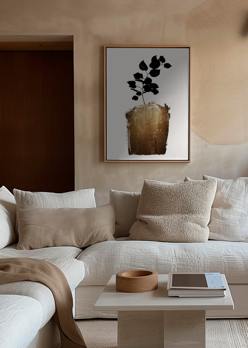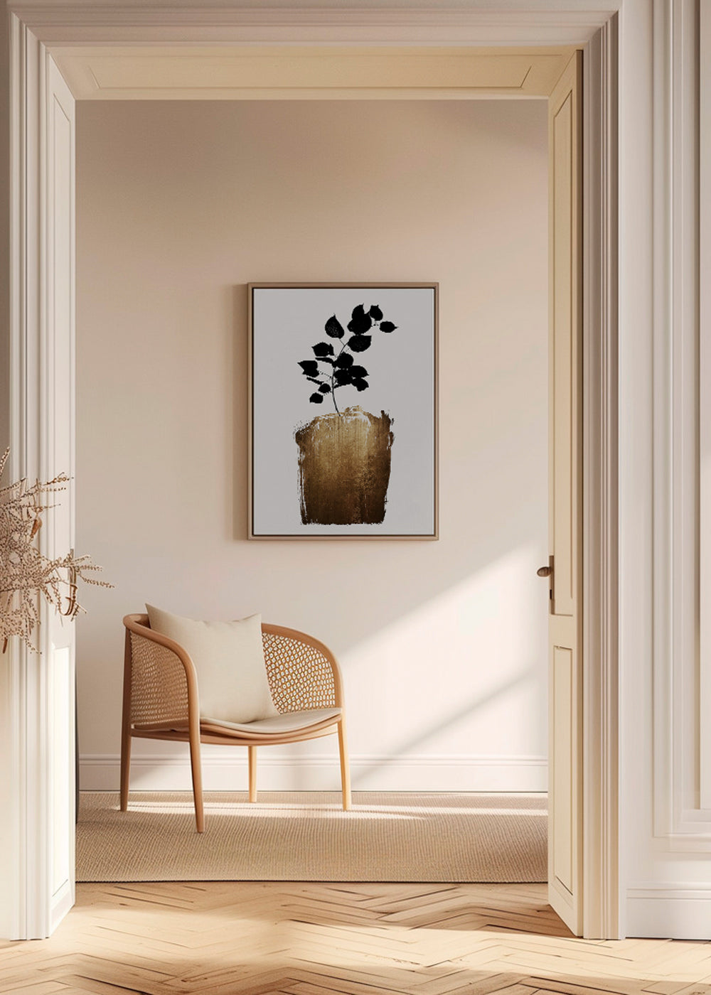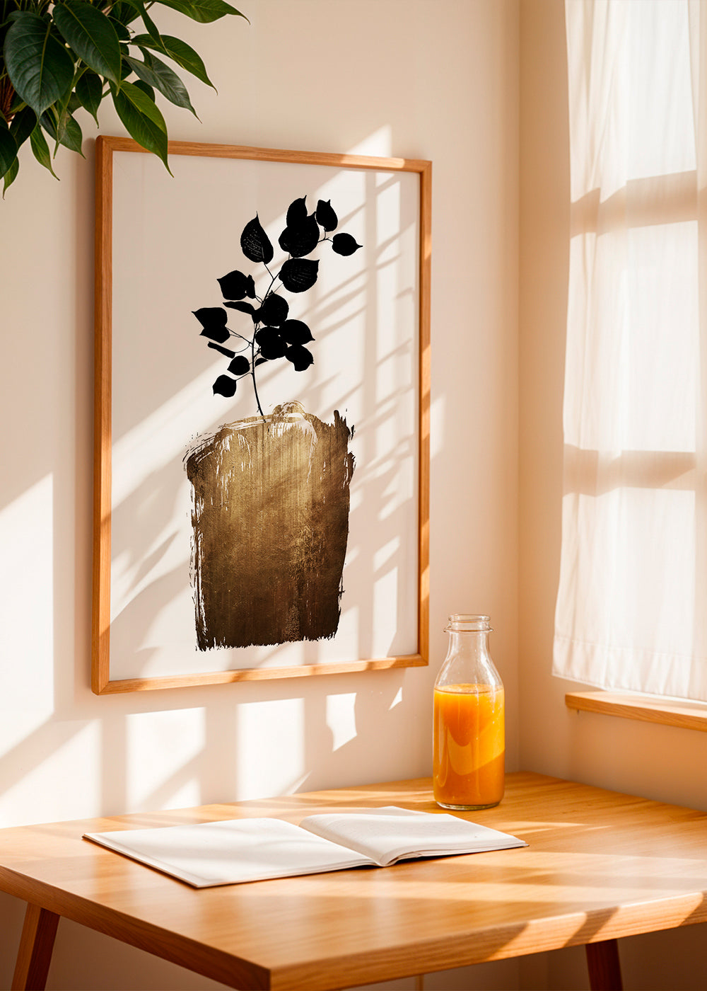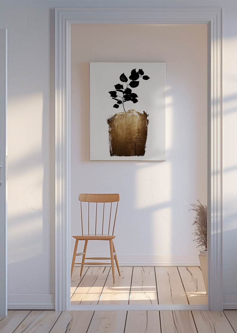 Este diseño de nuestra categoría de cuadros de flores y plantas, concebida por Kubistika, con tonalidades de colores dorados, y de disposición vertical. Este cuadro botánico es ideal para una decoración llena de naturaleza. Selecciona el tamaño que mejor encaje en tu decoración.
