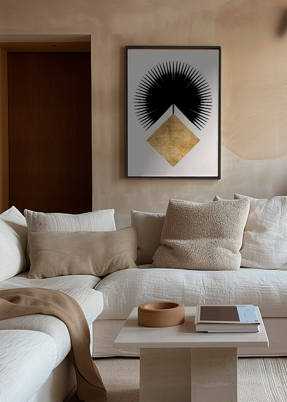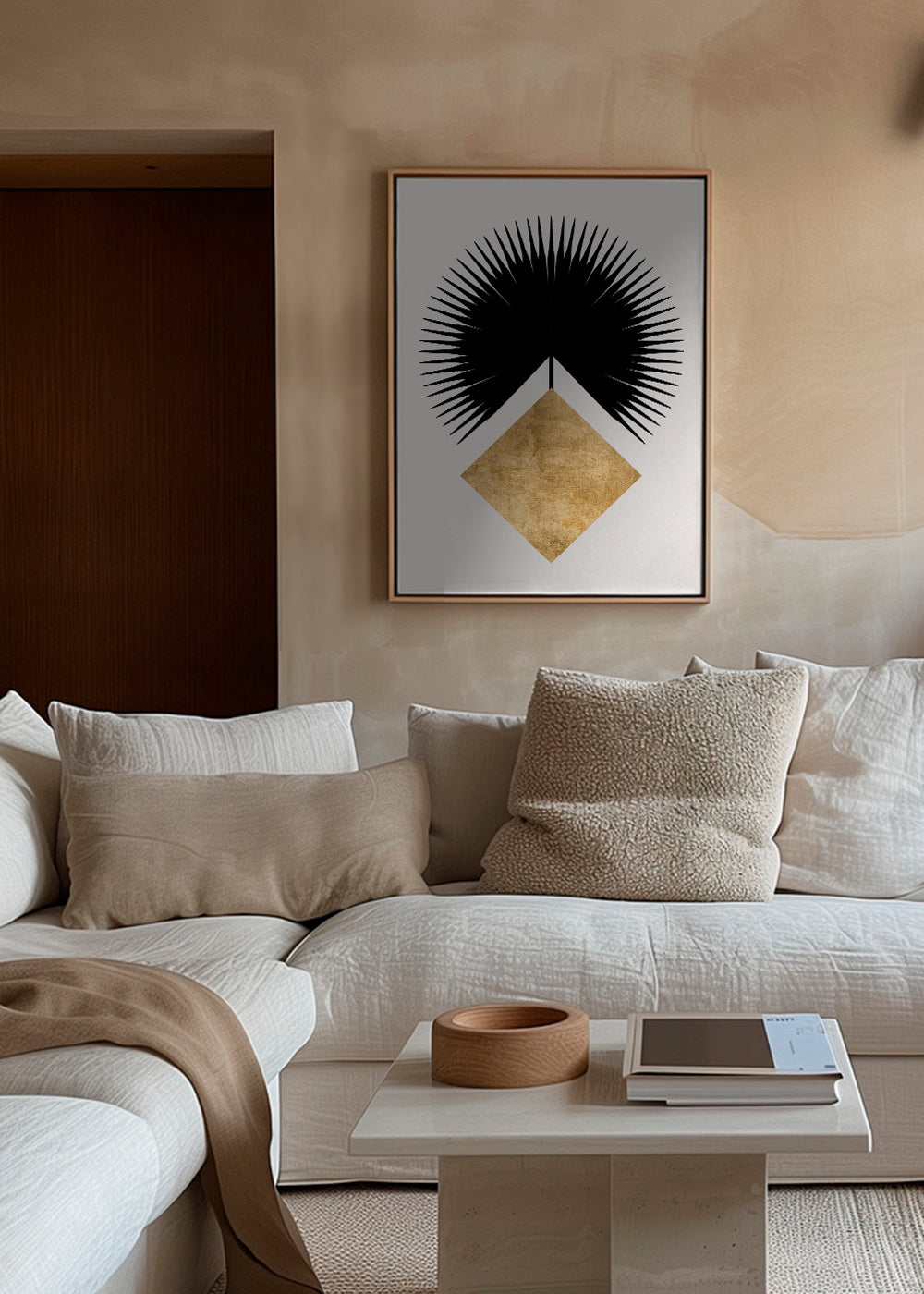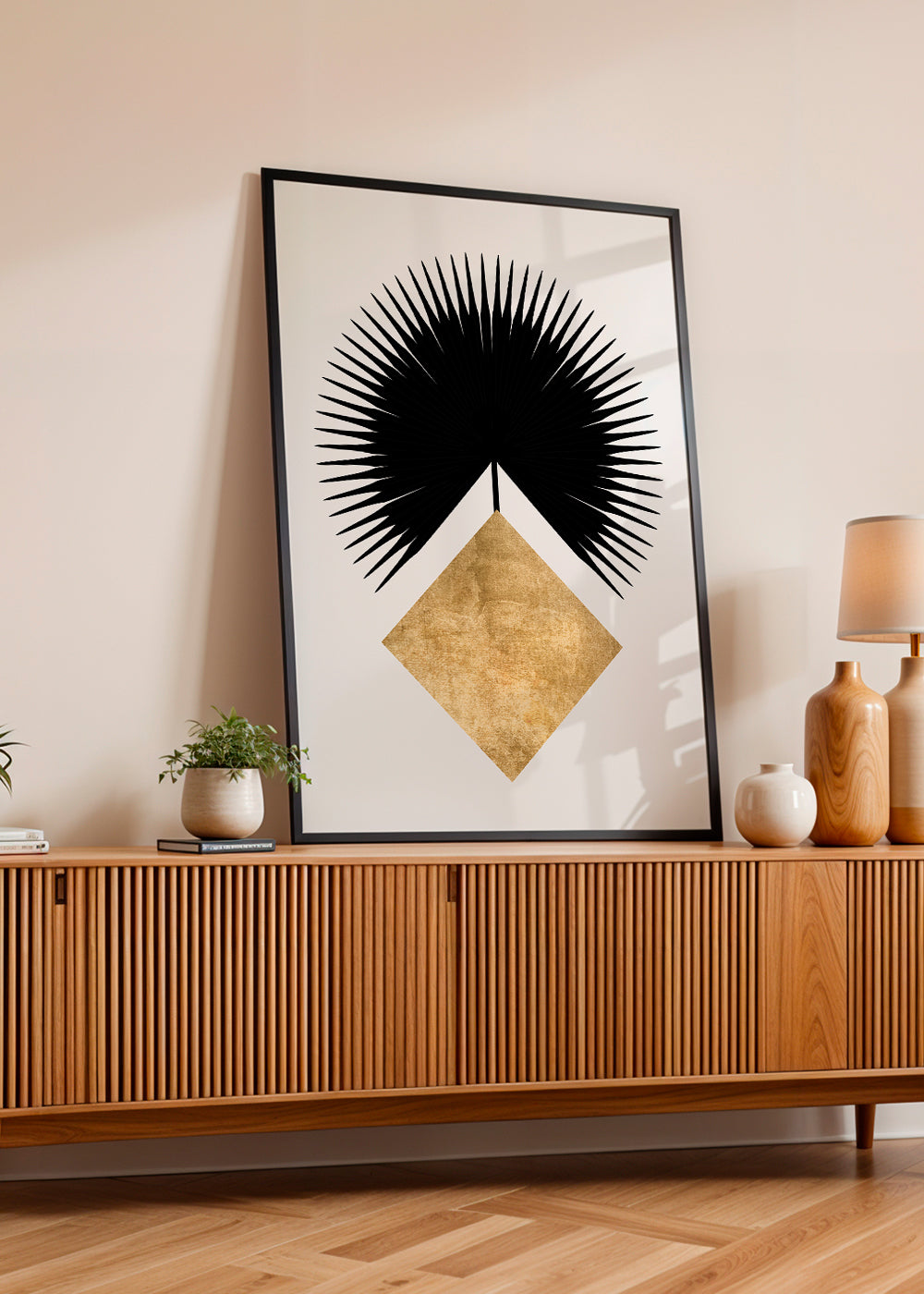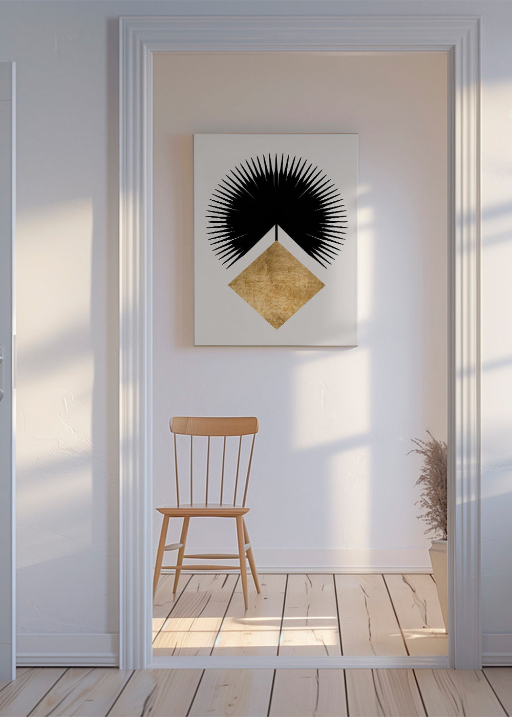 Este diseño de nuestra selección de cuadros geométricos, que nos presenta Kubistika, con toques dorados, y de posición vertical. Esta obra con formas abstractas es ideal para combinar con cuadros geométricos y arte abstracto. El toque definitivo para la decoración de tu casa.