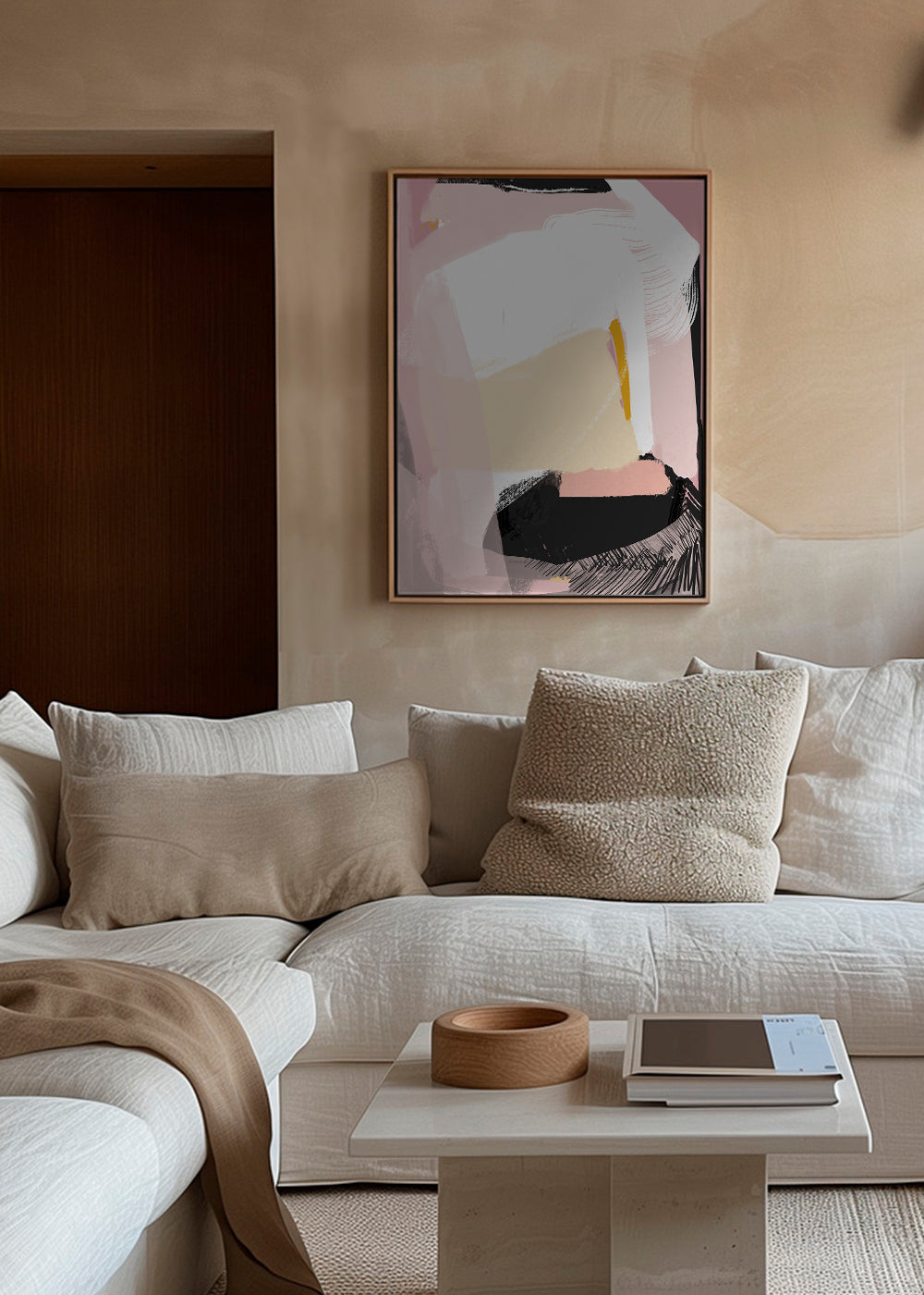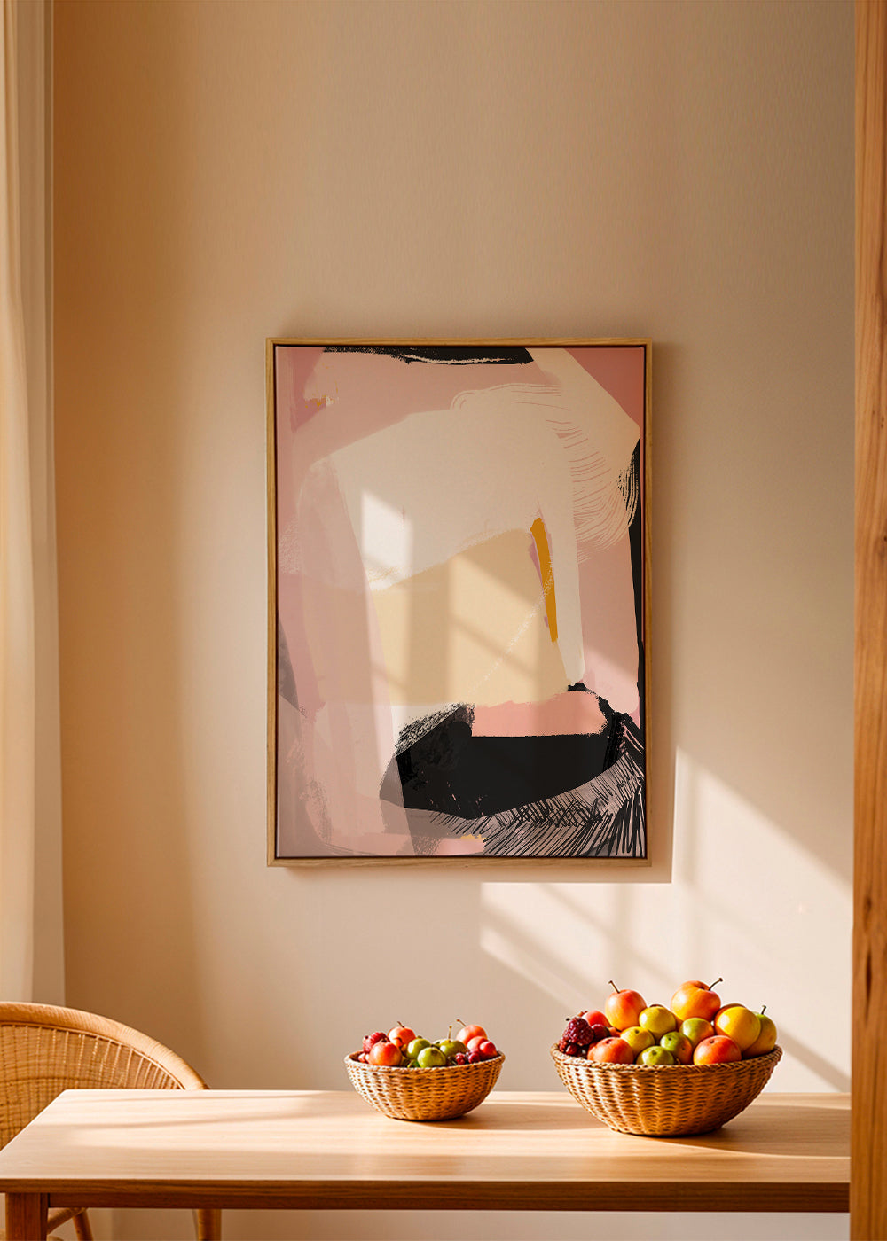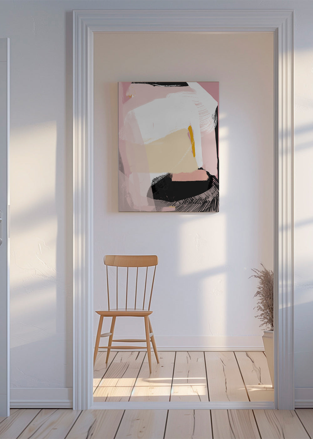 Bonita lámina de nuestro repertorio de cuadros abstractos, concebida por Jilli Darling, con tonalidades de colores rosas, y para colocar en posición vertical. Si necesitas añadir originalidad y estilo a tu decoración, este diseño abstracto te ayudará a dar un toque vanguardista a las paredes de tu hogar. Una pared vacía es un lienzo que debe ser pintado.