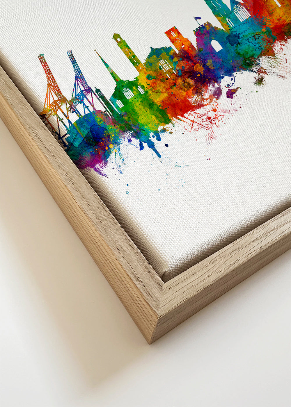 Un diseño con inspiración en nuestra colección de cuadros de skylines, de la colección de Michael Tompsett, con matices de colores multicolor, y orientada en horizontal. Un cuadro ideal para los viajeros empedernidos. Combínalo con otros de nuestros cuadros de mapas y ciudades. Llena tus paredes de arte.