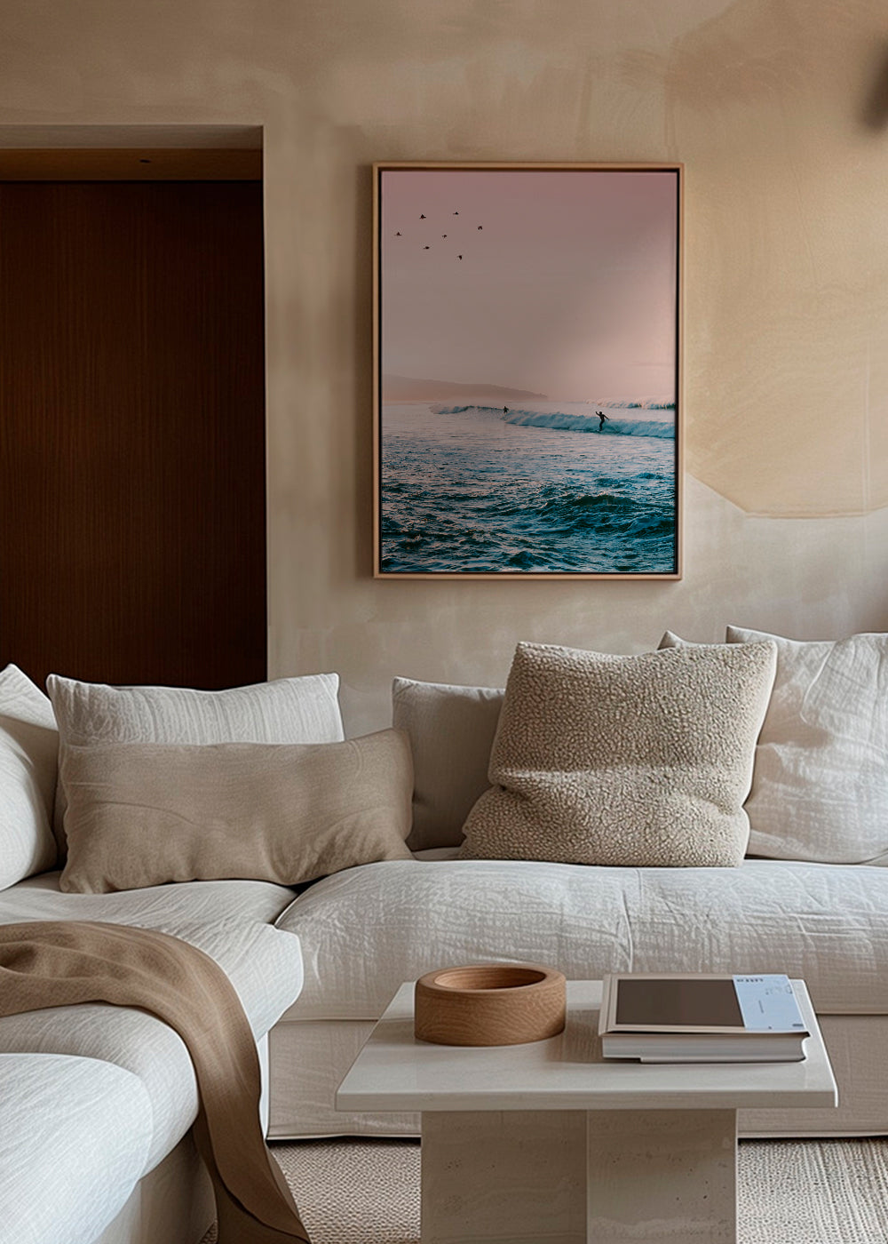 Una obra de nuestra colección de cuadros de surf, de la mano de Gal Design, en tonalidades de colores azules, y orientada en vertical. ¿Te gusta el deporte? Nuestras láminas y cuadros de deporte son la mejor opción para decorar ese espacio que tienes vacío. Un hogar se viste por las paredes.