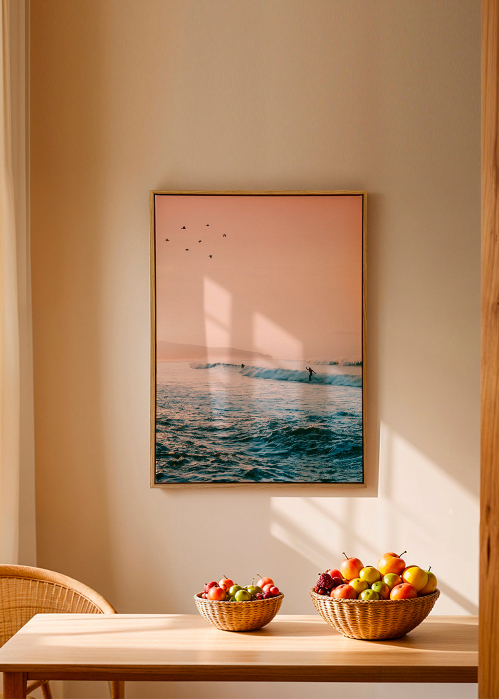 - Enmarcado gratuito: al escoger un marco, recibirás tus cuadros enmarcados y listos para colgar.