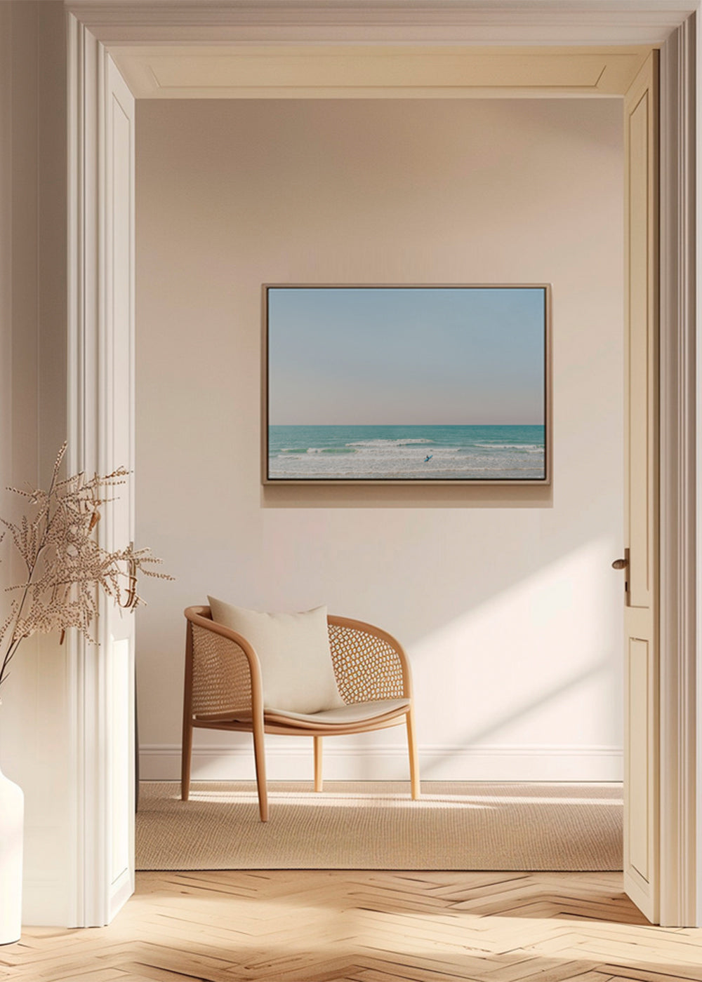 Un cuadro de nuestra colección de cuadros de playas y costas, concebida por Cordula Schaefer, con colores azules, y ideal para poner en posición horizontal. La tranquilidad y libertad que transmiten los cuadros de paisajes es única. Añade un poco de arte a la decoración de tu hogar.