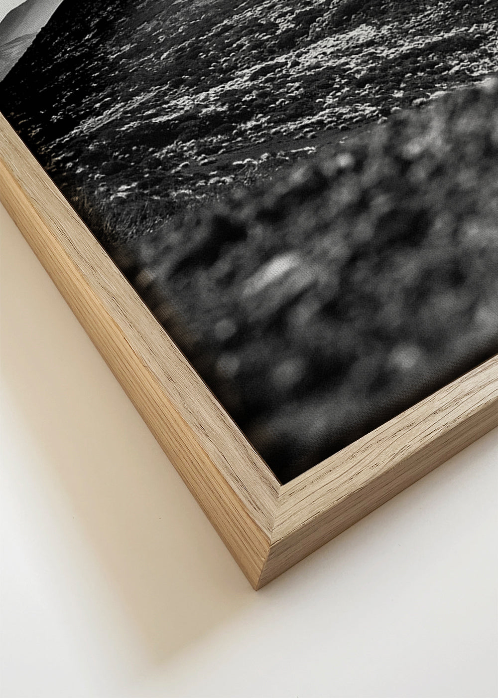 Un póster del estilo de nuestros cuadros de montañas, de Victoria Frost, con tonalidades de colores negros, y de formato vertical. La tranquilidad y libertad que transmiten los cuadros de paisajes es única. Crea rincones especiales.