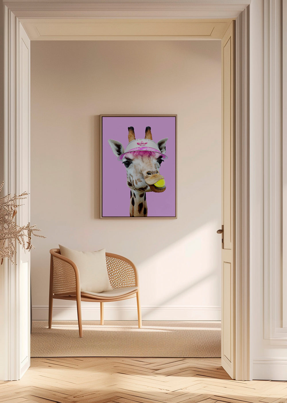 Una lámina de nuestro conjunto de cuadros de tennis, del artista Jonas Loose, con matices de colores rosas, y de posición vertical. Las láminas de animales nos permiten mostrar nuestro lado más salvaje en la decoración de las paredes. Una pared vacía es un lienzo que debe ser pintado.
