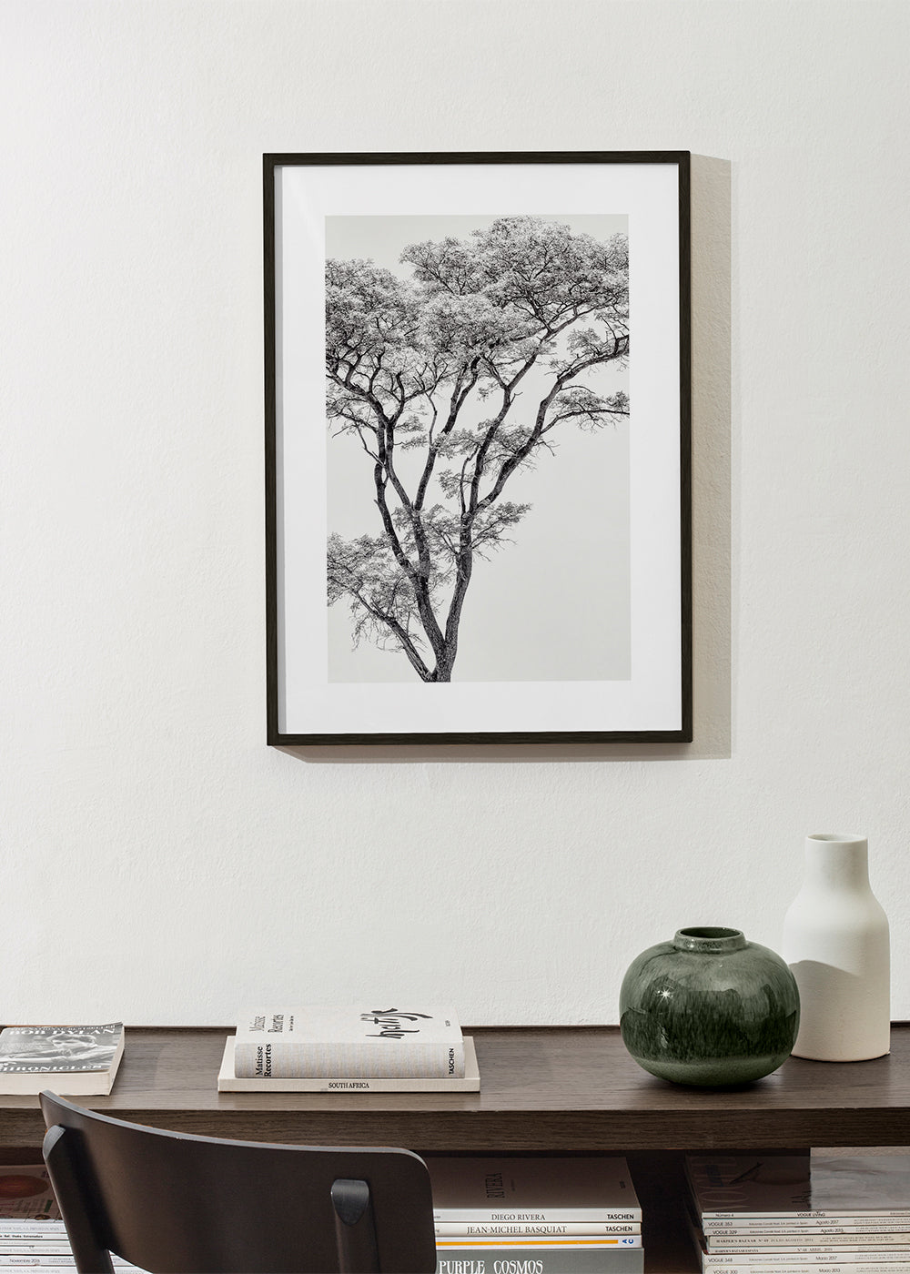 Esta obra con inspiración en nuestra colección de cuadros de cactus, de matices negros, y en formato vertical. Esta es una fotografía que no pasará desapercibida en ninguna decoración. Deja tus paredes a cuadros. El margen blanco que envuelve a la imagen potencia la expresividad de la obra.