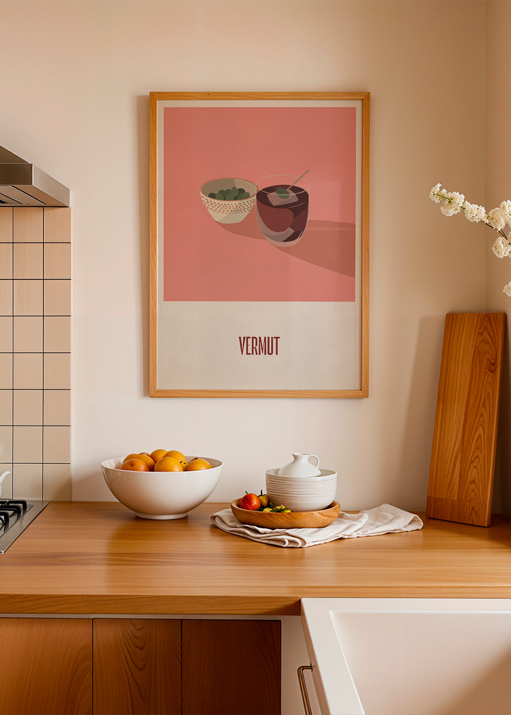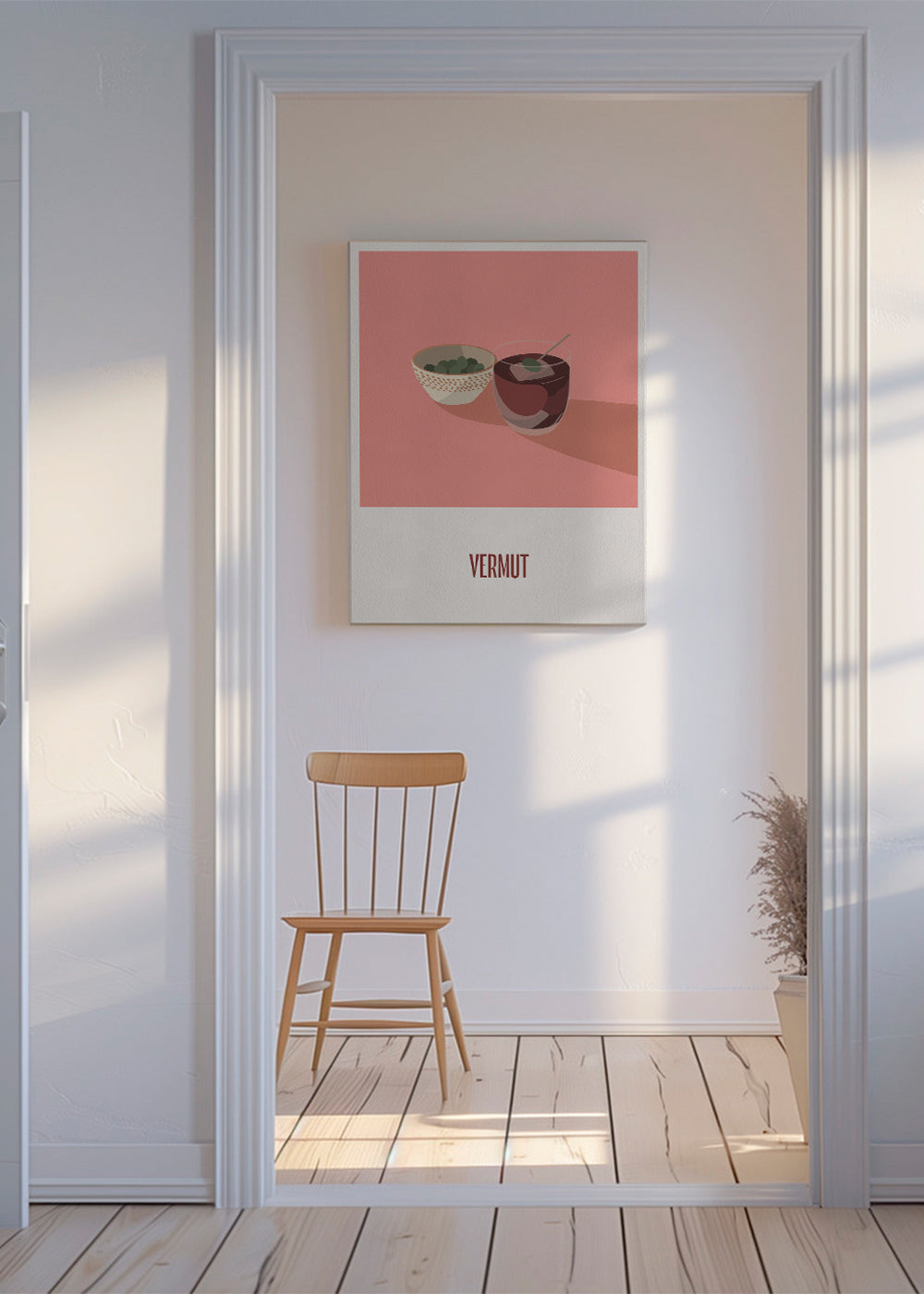 Una obra de nuestro repertorio de cuadros de licores y cocktails, de la mano de Nerea Ramírez, con toques naranjas, y de formato vertical. Llena tu cocina de arte combinando esta obra con otros diseños ideales para cocina. La combinación perfecta de originalidad y diseño.