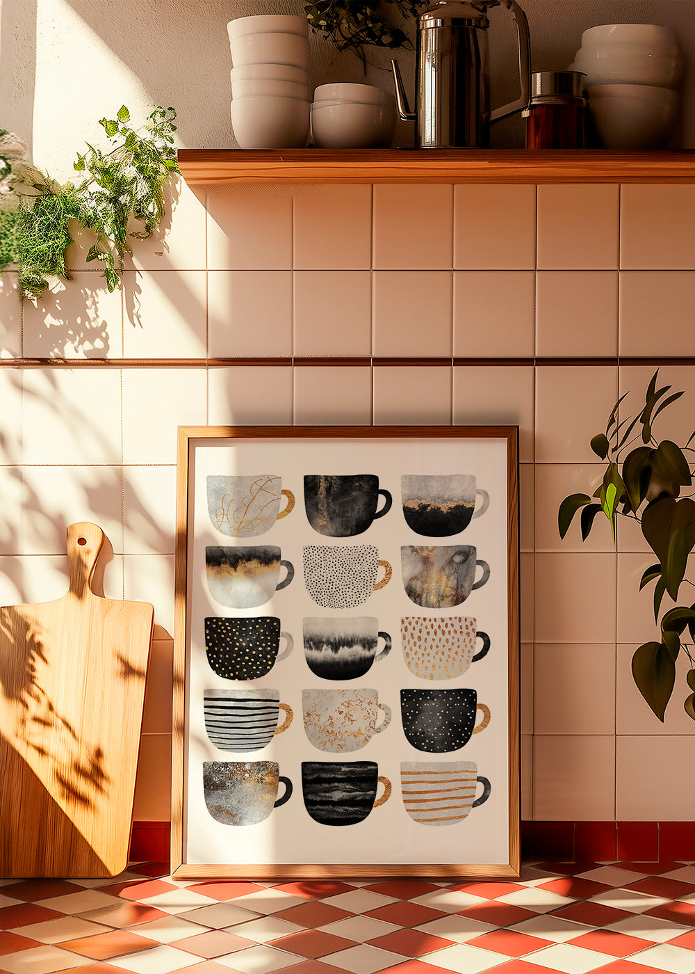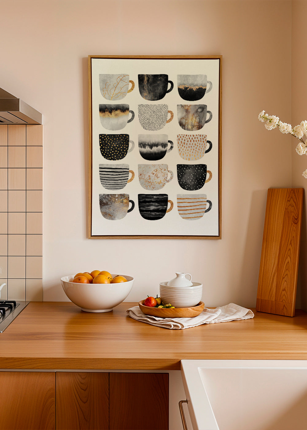 Cuadro vertical para cocina de tazas de café