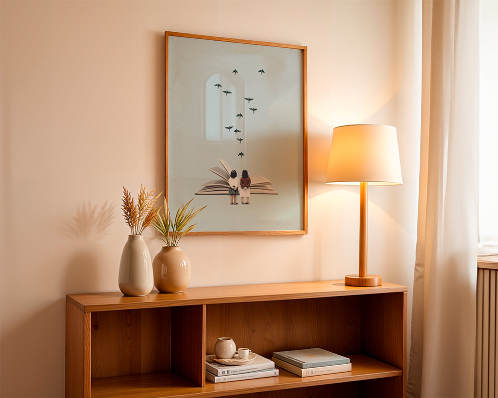 - Enmarcado gratuito: al escoger un marco, recibirás tus cuadros enmarcados y listos para colgar.