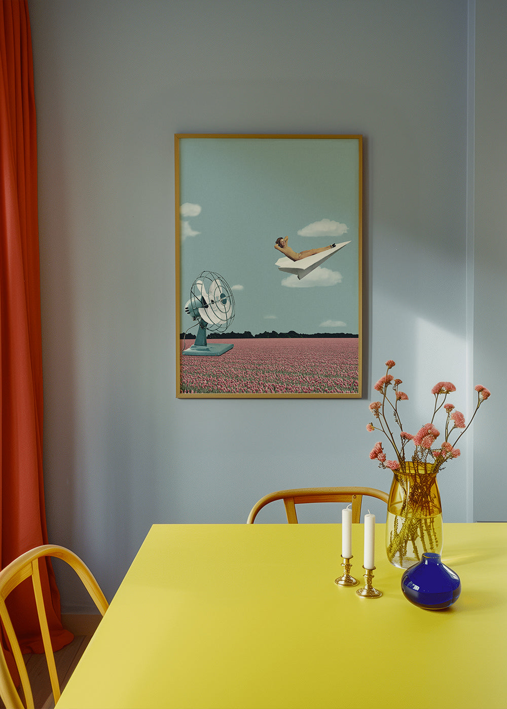 Un diseño del estilo de nuestros posters y láminas retro y vintage, de Maarten Léon, con pigmentos azules, y de posición vertical. Dale un toque vintage al ambiente combinando este y otros posters de estilo retro. Selecciona el tamaño que mejor encaje en tu decoración.