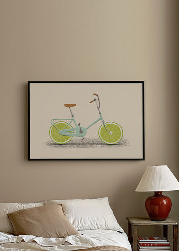 Este diseño de nuestra colección de cuadros de bicicletas, original de Florent Bodart, con matices de colores naranjas, y para colocar en posición horizontal. Un póster retro que puedes combinar con otros posters de estilo vintage para dar un toque original al hogar. Paredes elegantes para hogares chic.