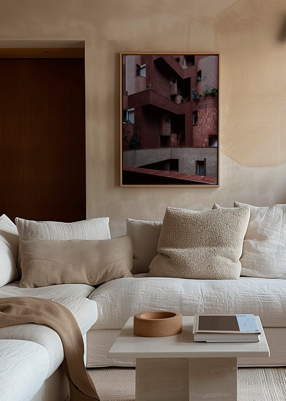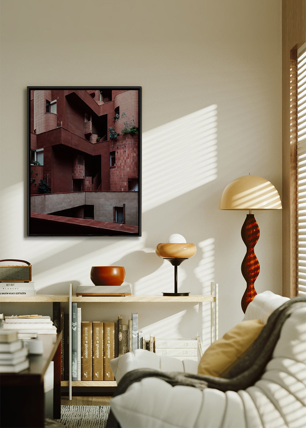 Un póster con inspiración en nuestra colección de cuadros y láminas de arquitectura, de la mano de Chris Abatzis, con tonos rojos, y con orientación vertical. Combina skylines, fotografías y mapas de ciudades para crear una composición solo apta para viajeros. Construye tu rincón favorito.